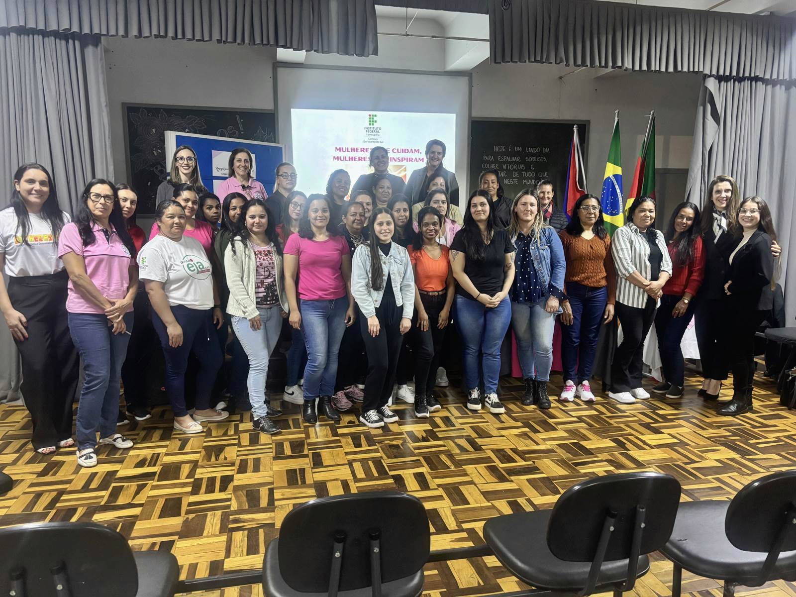 Além do momento de acolhida e das orientações sobre o funcionamento do curso, a programação contou com a palestra “Mulheres que cuidam, mulheres que inspiram”, ministrada pela profª Luciana Scherer, pós-doutora em Desenvolvimento Regional e integrante do eixo Gestão e Negócio do Campus São Vicente do Sul.
