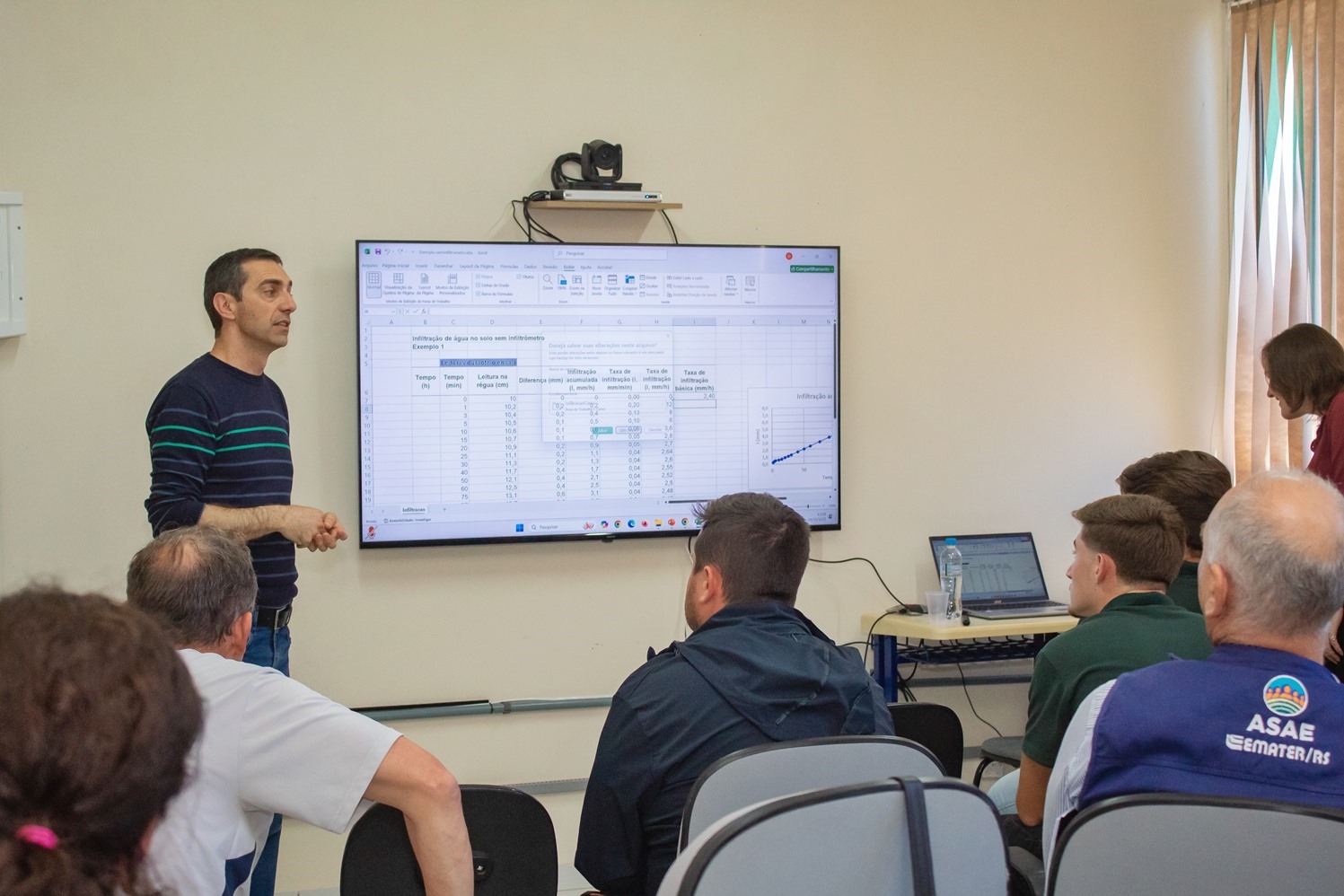 Nos dias 9 e 10 de outubro, o Instituto Federal Farroupilha – Campus São Vicente do Sul sediou uma edição do Módulo 2 do Curso de Capacitação “Práticas de manejo e escoamento superficial”, que reuniu 35 participantes, entre profissionais da assistência técnica, autônomos e produtores rurais.