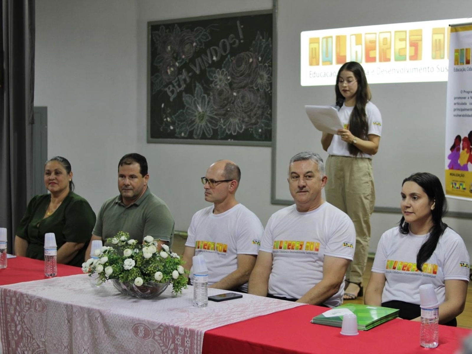 Compuseram a mesa solene a secretária municipal de Educação, Vanessa Antunes; o secretário de Assistência Social, Alex Sandro Teixeira da Rosa; o diretor-geral do Campus São Vicente do Sul, Paulo Roberto Cecconi Deon; o diretor de Pesquisa, Extensão e Produção, Fabiano Damasceno; e a coordenadora local do programa, professora Aline Martins. Durante a cerimônia, as autoridades destacaram a relevância da qualificação profissional, a promoção da inclusão social e do empoderamento feminino, bem como a importância de ações formativas alinhadas às demandas da sociedade e ao fortalecimento da cidadania por meio da educação.