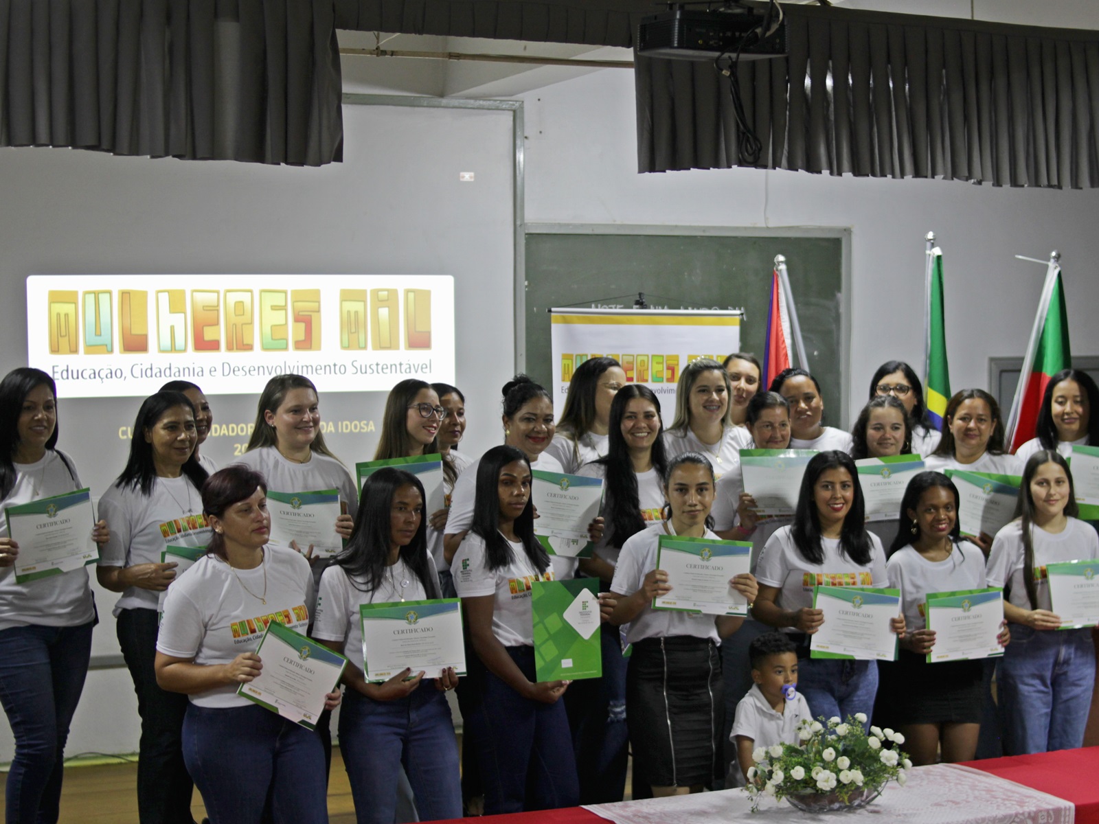 No dia 27 de novembro, o Instituto Federal Farroupilha – Campus São Vicente do Sul realizou a formatura de 24 mulheres que concluíram o Curso de Cuidadora de Pessoa Idosa, ofertado por meio do Programa Mulheres Mil, no município de Cacequi/RS. A ação, vinculada ao Ministério da Educação (MEC), foi planejada e executada pelo IFFar-SVS, por meio da Pró-Reitoria de Extensão, em parceria com a Prefeitura Municipal de Cacequi.
