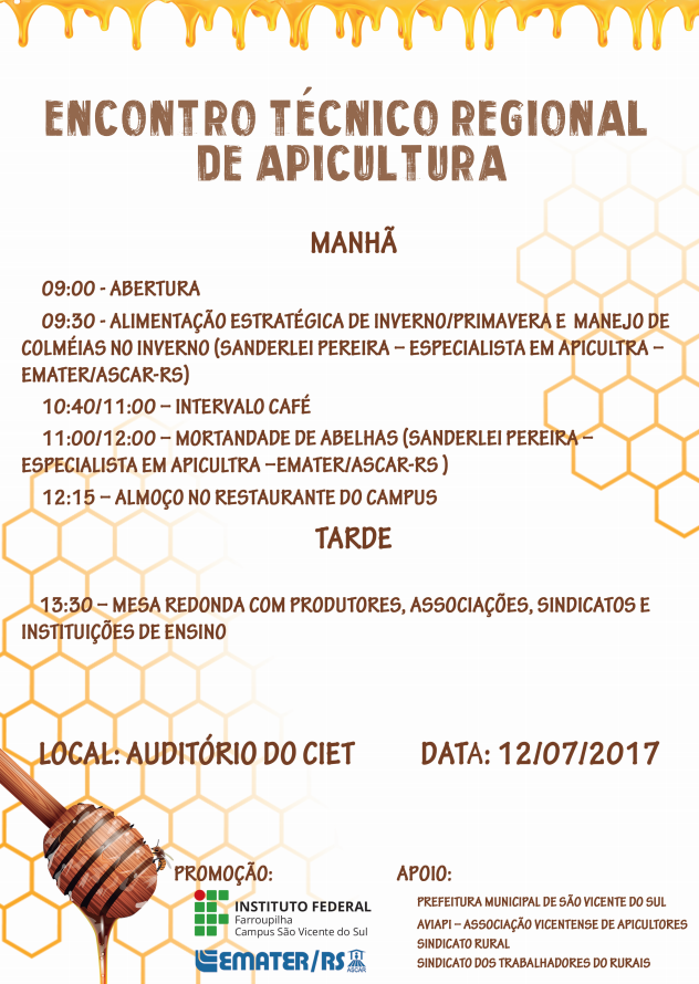 No próximo dia 12, ocorrerá o "Encontro Técnico Regional de Apicultura", no Instituto Federal Farroupilha - campus SVS