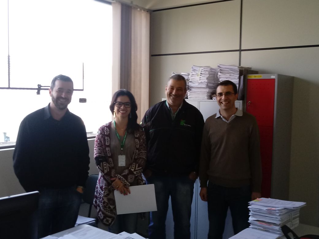 A Diretoria de Administração, por meio das CLC e COF, Coordenação de Licitação e Contratos e Coordenação de Orçamento e Finanças assinou, na metade do mês de Setembro, o contrato para Aquisição de Bibliografias para a biblioteca do Campi de São Vicente do Sul, contemplando as áreas de Agronomia e de Administração. Além do contrato foram alocados em torno de R$ 50.000,00 para a aquisição de livros nas áreas citadas, totalizando com este valor um investimento de mais de R$ 80.000,00 somente no ano de 2017 para a compra de livros, ação esta que visa a modernizar o acervo bibilográfico da biblioteca e melhorar a qualidade de ensino dos estudantes inseridos dentro dos eixos mencionados. Os livros adquiridos serão utilizados nos estudos dos cursos técnicos nas áreas de administração e agricultura, assim como também nos recentes cursos superiores de bacharelado em Agronomia e Bacharelado em Administração implantados no Campus. Na foto, da esquerda para a direita, os coordenadores do CLC E COF, Gustavo Reis San Martin e Mariseti Rodrigues, além do Diretor de Administração e do Engenheiro Agrônomo do Campus, Gilson Parodes e Cleudson Michelon, reunidos após a conclusão e assinatura do contrato com a empresa vencedora do processo de licitação para o fornecimento de Bibliografias.