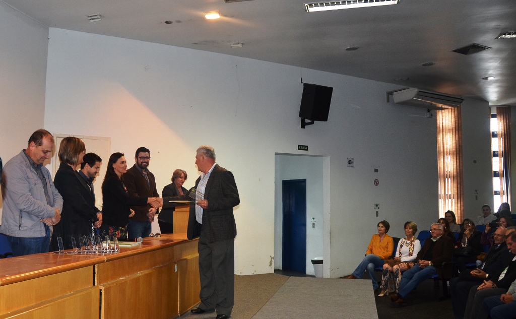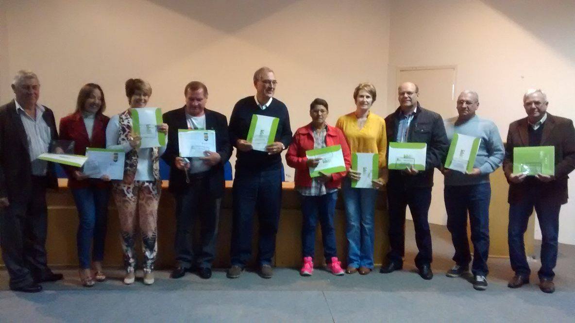 Os servidores aposentados do Campus São Vicente do Sul foram homenageados no último dia 26 de abril, em cerimônia inserida na programação da Reitoria Itinerante. O momento foi marcado pela entrega de certificados em reconhecimento aos serviços prestados à administração pública federal e marcante pelas palavras de carinho, personalizadas para cada servidor homenageado, de forma a resumir os aspectos mais acentuados de suas trajetórias profissionais.