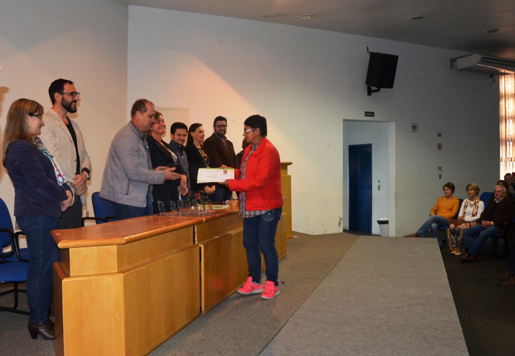 Dos primeiros dezesseis servidores aposentados após a criação do Instituto Federal Farroupilha, dez se fizeram presentes para receber, das mãos da Reitora, Profª. Carla Jardim, o certificado de reconhecimento e os cumprimentos pela conquista.