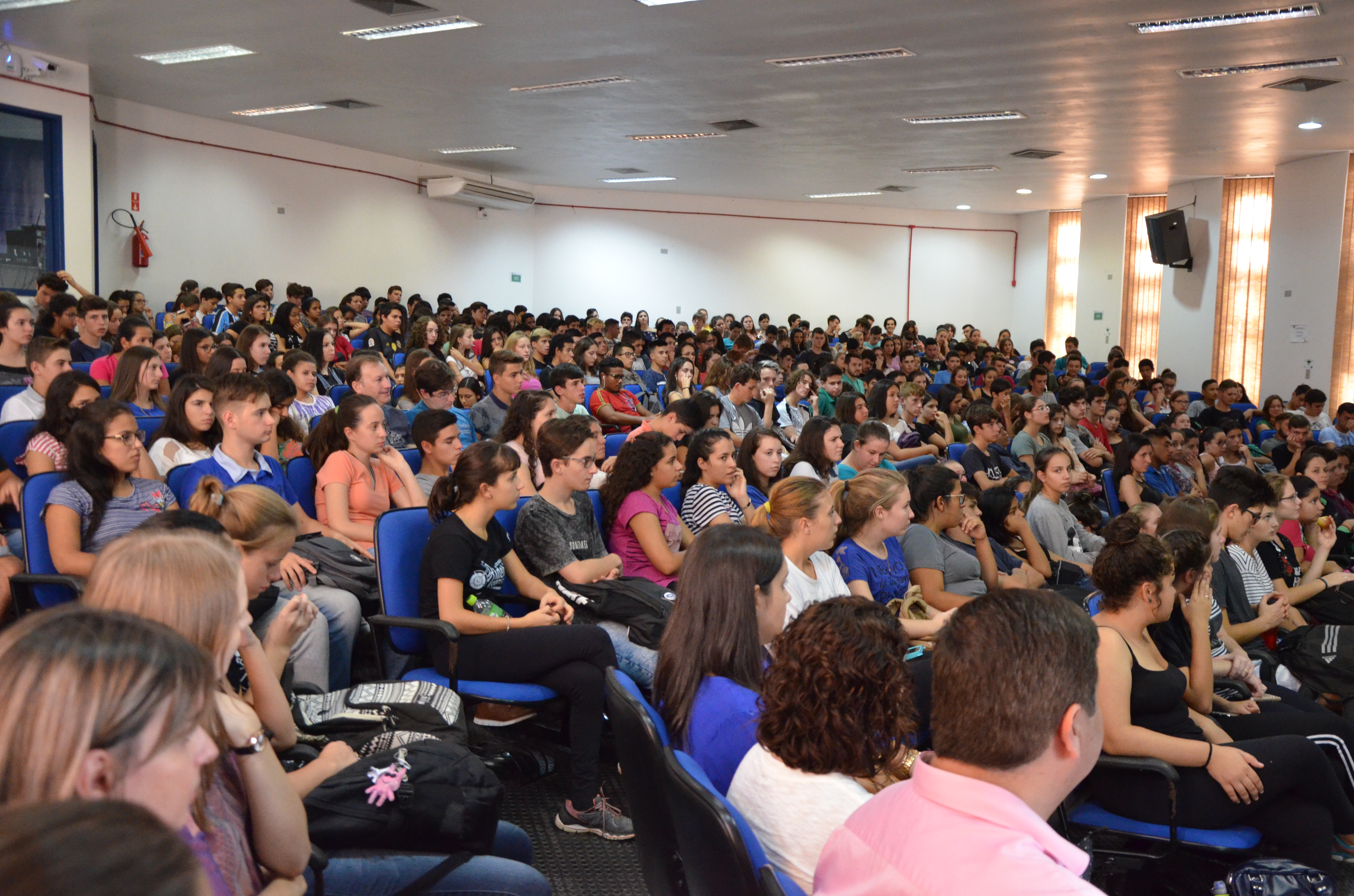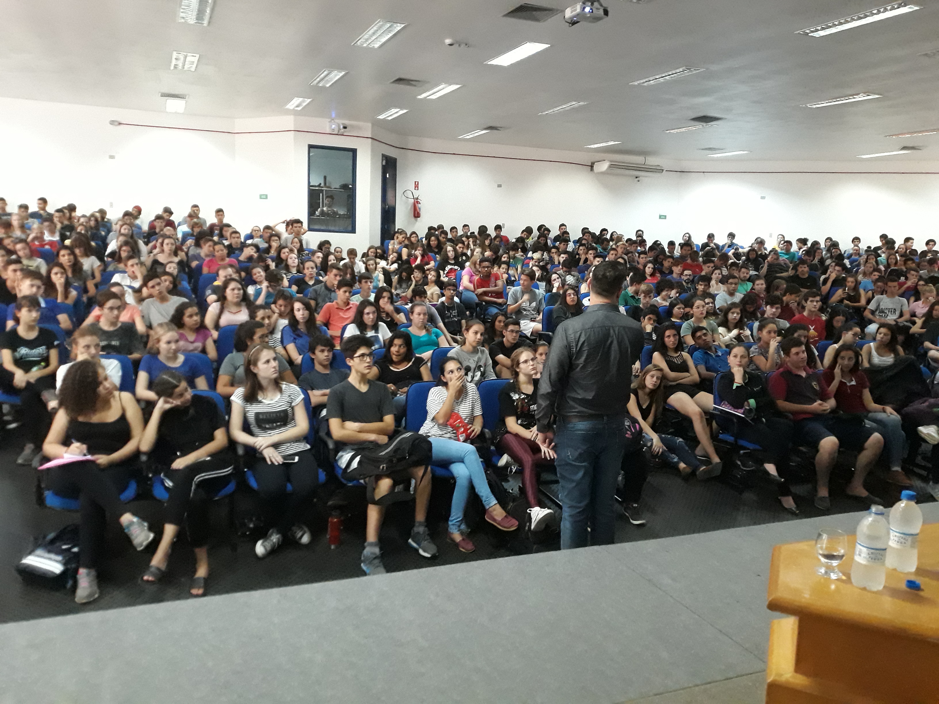 Por uma questão de espaço físico, a palestra foi direcionada aos alunos dos primeiros e segundos anos do ensino médio, mas devido ao interesse de mais pessoas, o auditório esteve com sua lotação máxima.