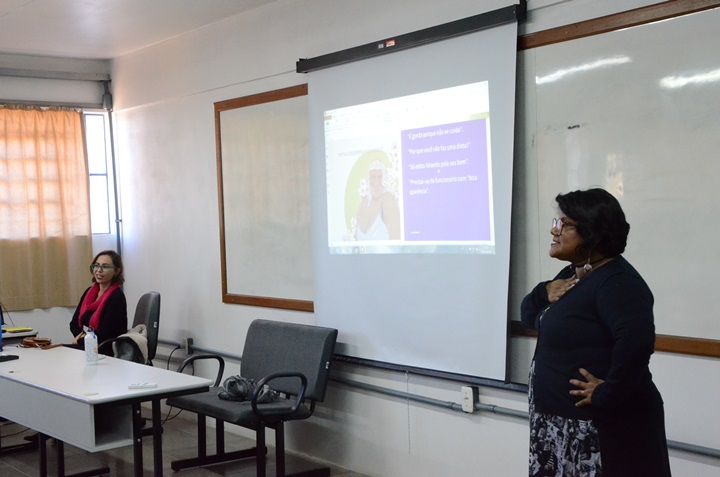 Na última quarta-feira, dia 23 de maio, o Núcleo de Gênero e Diversidade Sexual (NUGEDIS) e Núcleo de Estudos Afro-brasileiros e Indígenas (NEABI) do Campus São Vicente do Sul promoveram mais uma edição do Café Cor. Dessa vez, o tema abordado foi Gordofobia e Feminismos, sendo a atividade ministrada por Flávia Luciana Magalhães Novais, doutoranda em Psicologia Social e Institucional da Universidade Federal do Rio Grande do Sul (UFRGS).