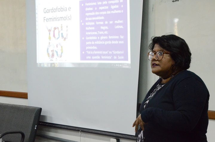 Enfatizando que o corpo gordo é apenas mais um traço da diversidade corporal entre as pessoas, Flávia apresentou esclarecimentos em relação ao conceito de gordofobia e sua relação com questões religiosas e midiáticas, por exemplo. Além disso, sua abordagem traça um paralelo com os movimentos feministas que, historicamente, sempre buscaram problematizar questões relacionadas à repressão e ao controle dos corpos das mulheres.