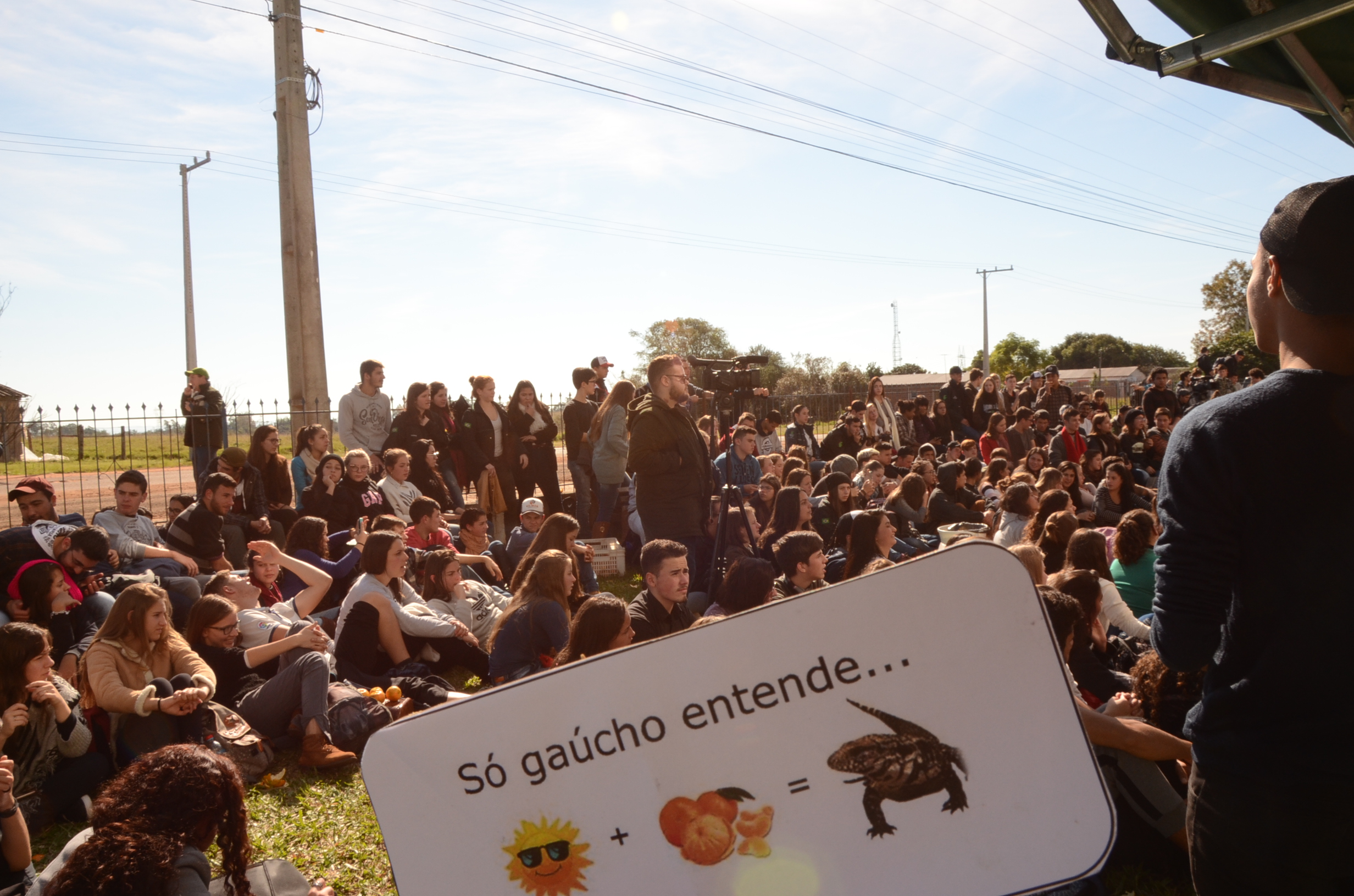 No dia 19 de junho, última terça-feira, cerca de 400 pessoas, entre estudantes de vários níveis e servidores, estiveram reunidas no horário do meio-dia para prestigiar a 1ª edição do “Lagarteando”. Este evento cultural proporcionou a comunidade escolar um momento para lagartear ao sol, tomar mate, apreciar bergamotas e laranjas, além de balançar ao som de talentos musicais do Campus São Vicente do Sul.