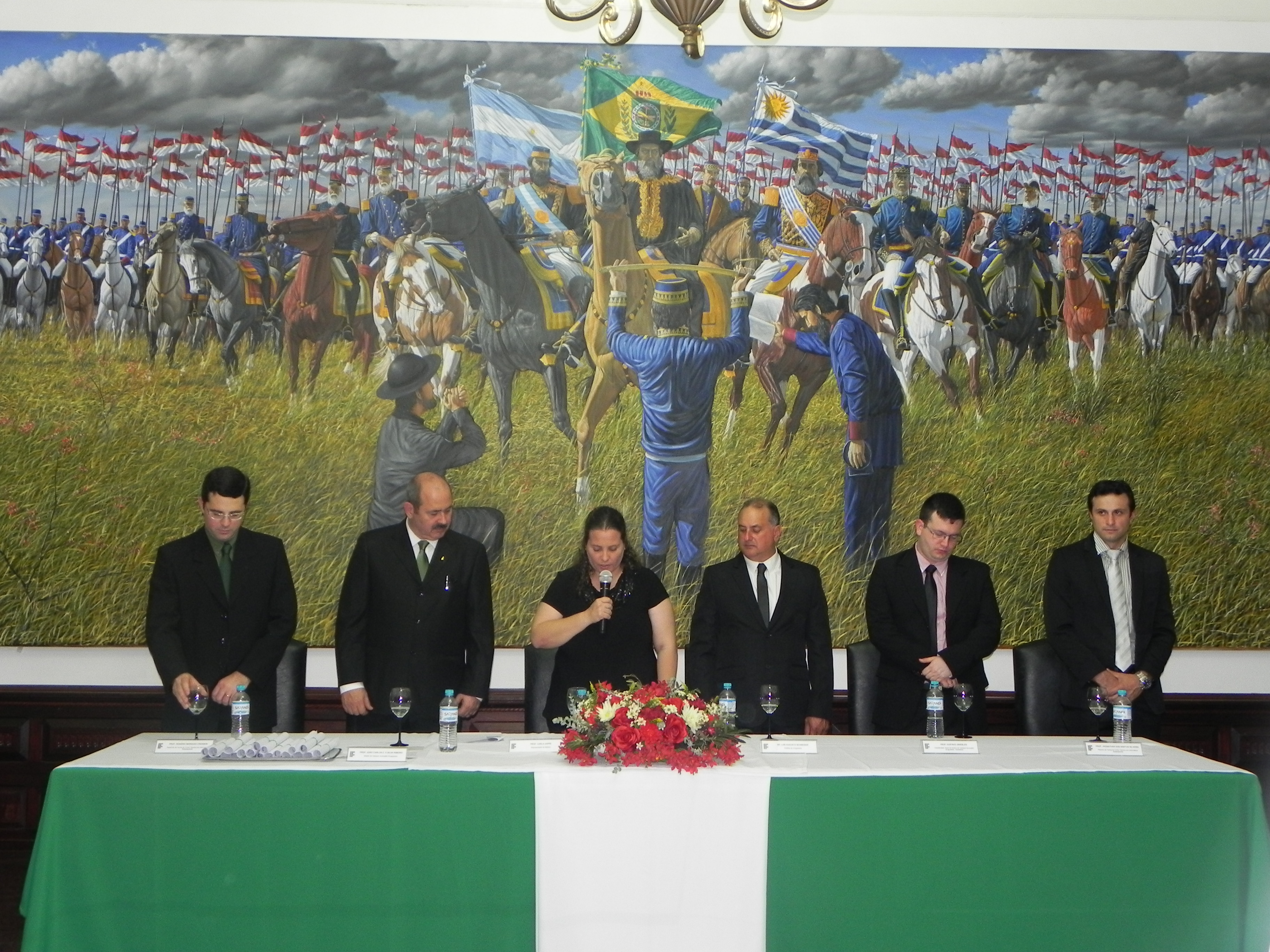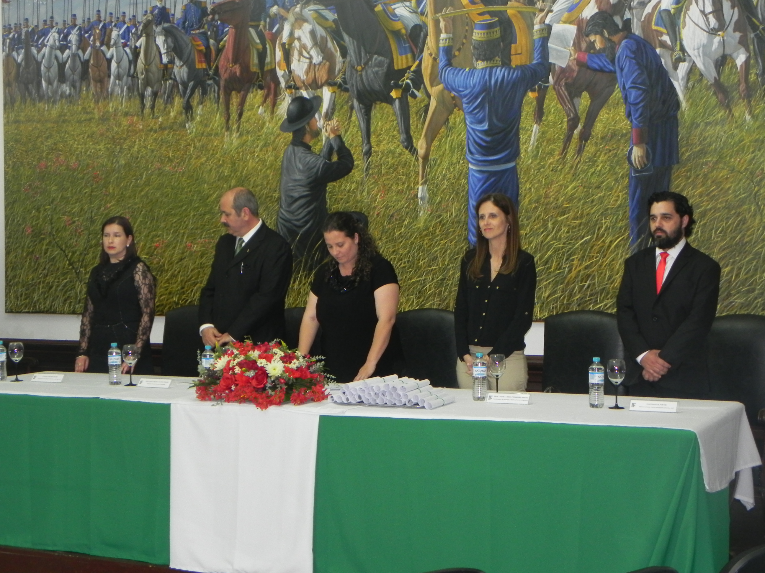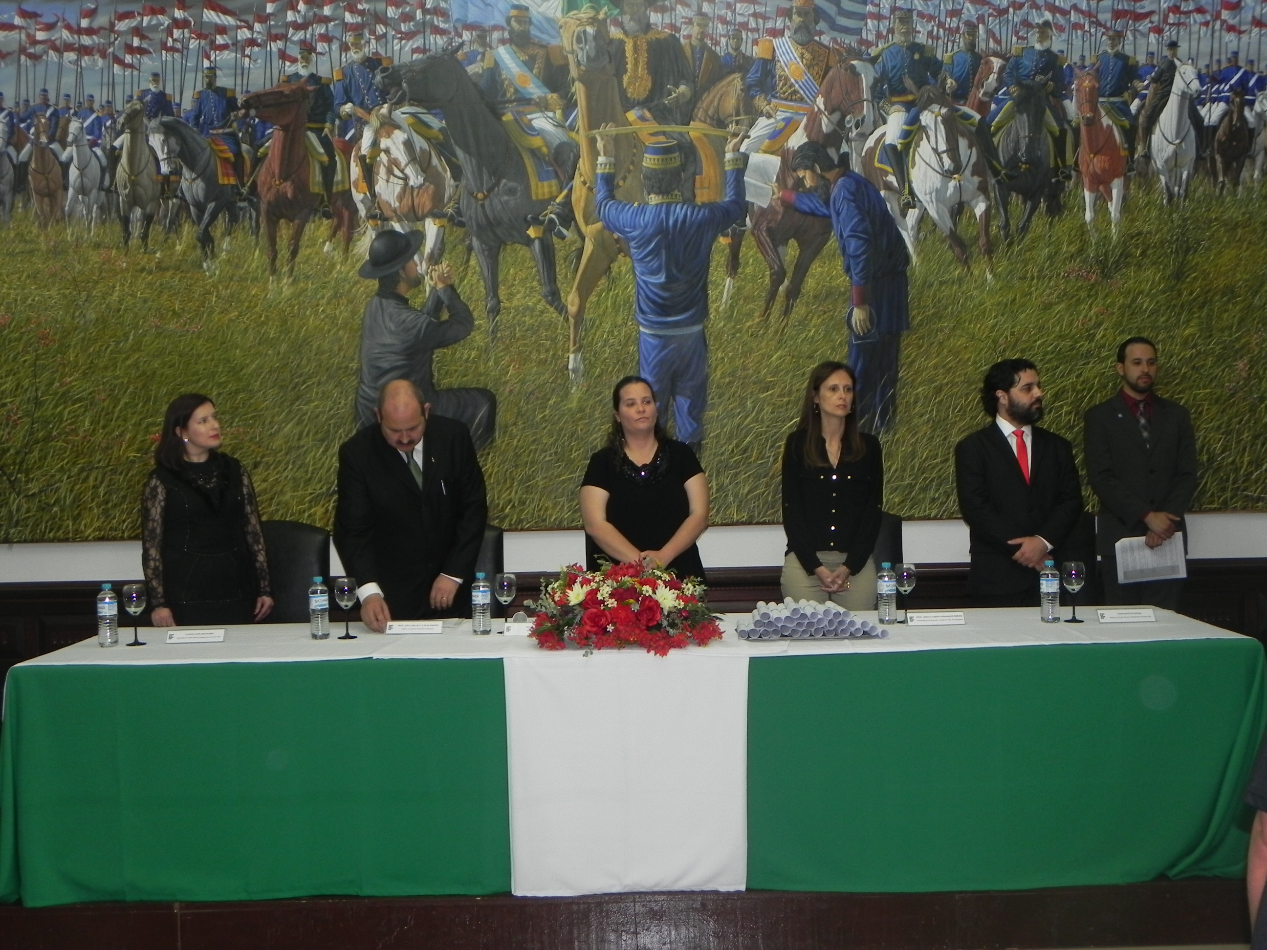 A mesa de honra foi composta pela Prof.: Carla Tatiana Zappe; o Diretor do Campus, João Carlos de Carvalho e Silva Ribeiro; Coordenador de Ensino substituto Prof.: Gustavo Griebler; o Paraninfo e Patrono da turma do Curso Técnico em Informática, Prof.: Rogério Marques Cresseri e Prof.: Jhonathan Alberto dos Santos Silveira; a Coordenadora de Educação a Distância Polo de Uruguaiana, Prof.: Úrsula Adriane Lisbôa Fernandes Ribeiro; a Paraninfa e o Patrono da turma Curso Técnico em Infraestrutura escolar, a Prof.: Cláudia Guirlan Nunes e o Prof.: Filipe Bastos Poetini.