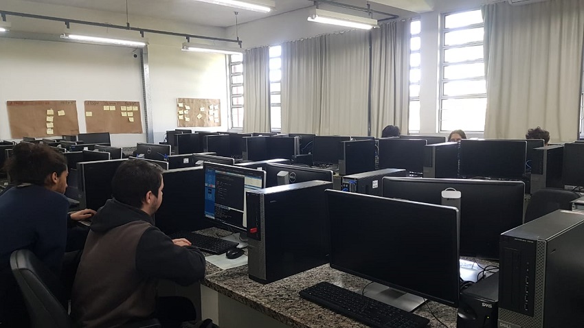 Durante três horas de competição, os trios integrados por alunos do curso Técnico em Informática Integrado definiram suas estratégias para analisar os códigos de 9 programas escritos nas linguagens de programação Python, C, Java, PHP, entre outras, fornecidos pela Comissão Organizadora.