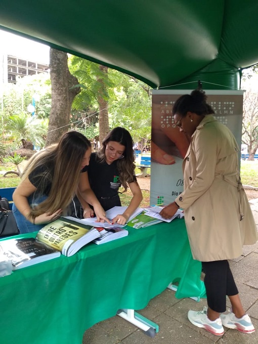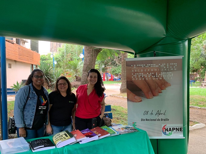 A atividade desenvolvida, o Braille na Praça, foi alusiva ao dia 8 de abril, Dia Nacional do Sistema Braille, e contou com oficina de escrita em Braille, contação de histórias e exposição de materiais.