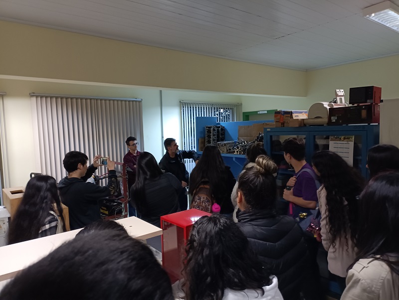 Já na visita aos prédios da Universidade o grupo foi acompanhado pelo professor Jean Cheiran e lá puderam conhecer os laboratórios das engenharias, biblioteca e restaurante universitário.