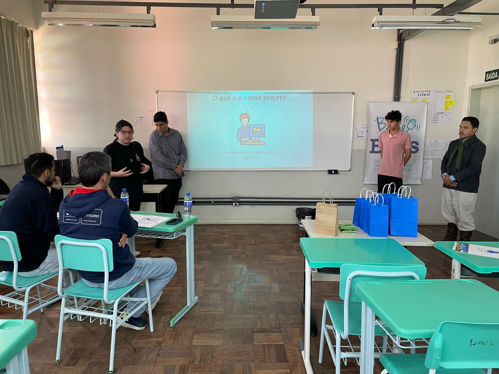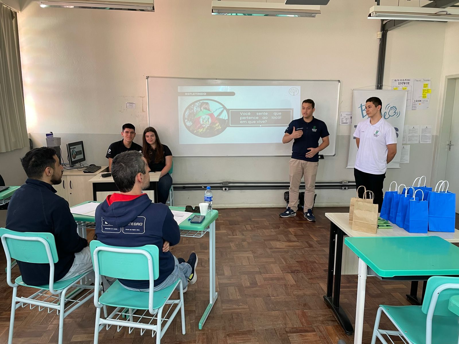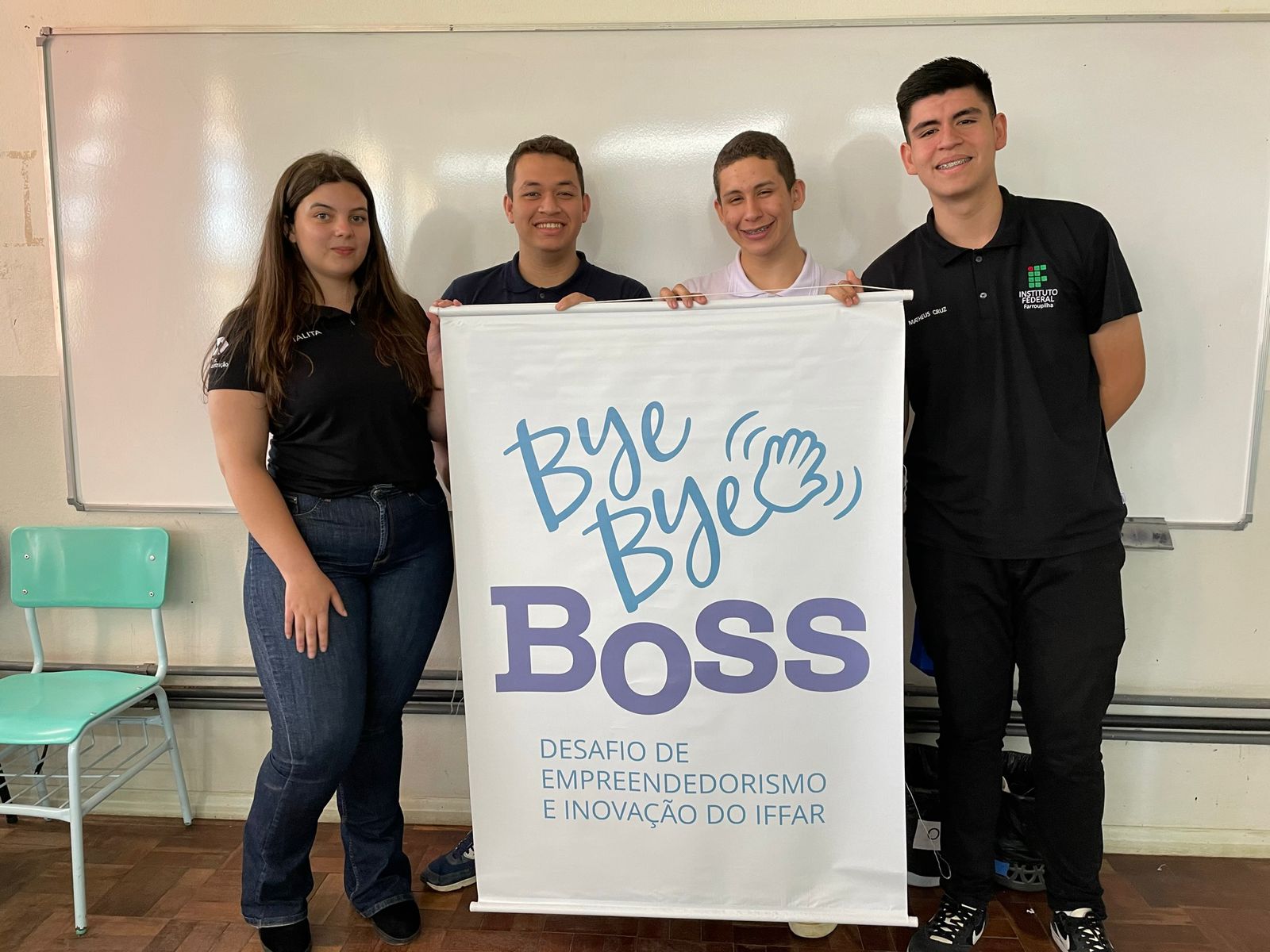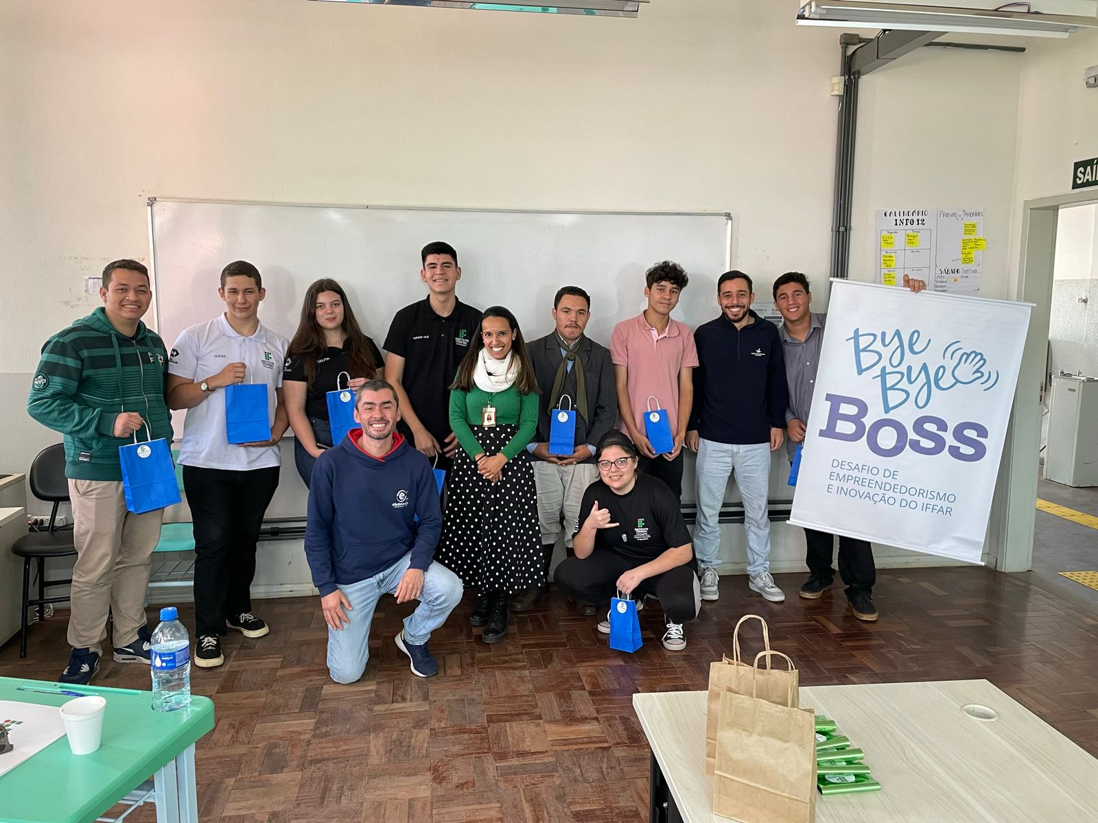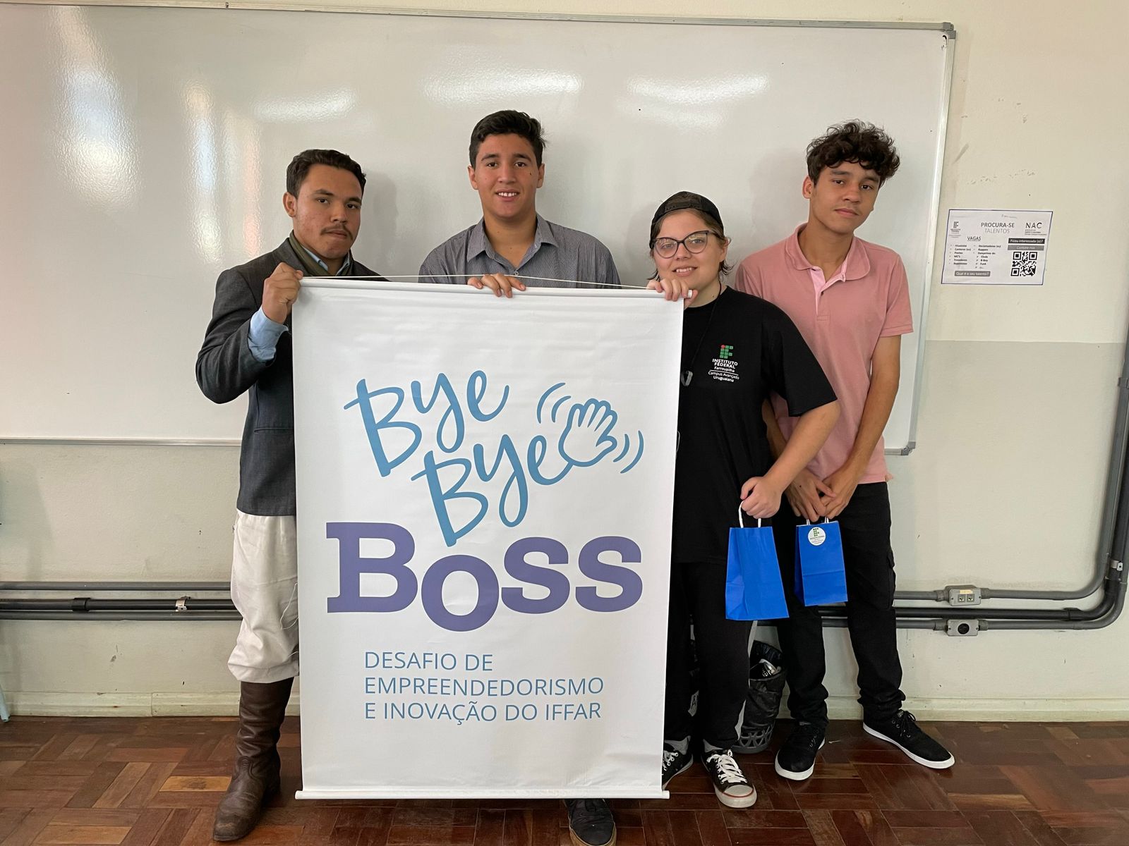 No último sábado, 30 de setembro, ocorreu a etapa classificatória do Desafio de Empreendedorismo e Inovação- Bye Bye Bye. Participaram duas equipes dos cursos técnicos em administração e informática integrado: Minha Terra e Dream Start. Fizeram parte da banca de avaliação os empresários Bruno Muswieck e Bruno Calixto, proprietários da Eletroeste e Agência Aliança respectivamente. As equipes classificadas irão competir em Alegrete na etapa final em 20 de outubro. Boa sorte aos nossos estudantes.