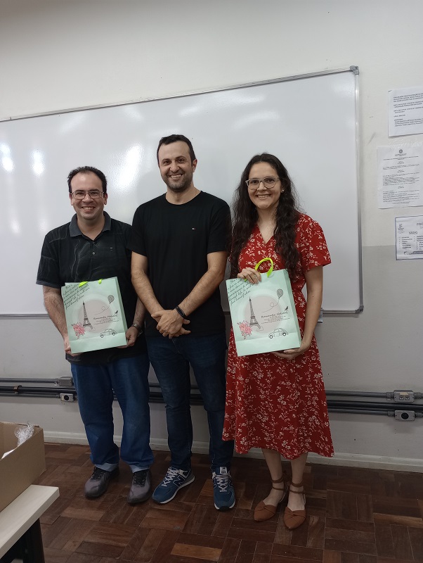 Na última quinta-feira, 21 de dezembro, todos os servidores do Campus se reuniram em Reunião Geral para uma fala da equipe diretiva de agradecimento pelo ano letivo que se encerrou e bons votos de final de ano. Em tempo, foram homenageados os professores substitutos Fernanda e Rodrigo que não retornarão no próximo ano e o professor Rogério Grotti que está de partida para o Campus Frederico Westphalen.