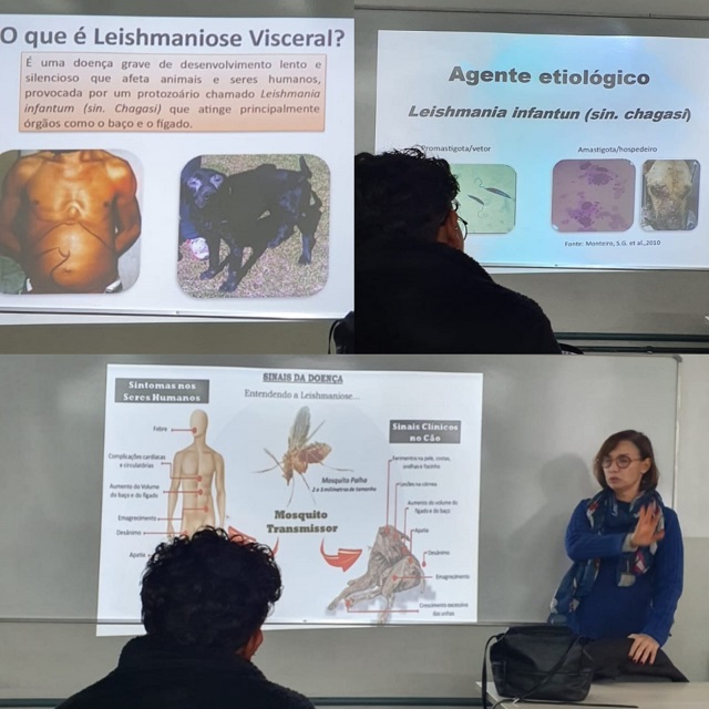 A convite da presidente do NUGEA, Diana Neves, veio ao Campus a coordenadora da vigilância ambiental do município, Laura Massia, a qual abordou o tema Leishmaniose, durante aulas de biologia da professora Anelise Cruz e entrevistas.