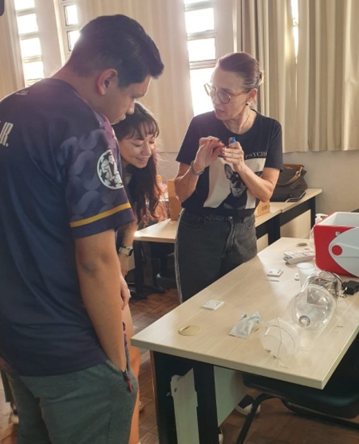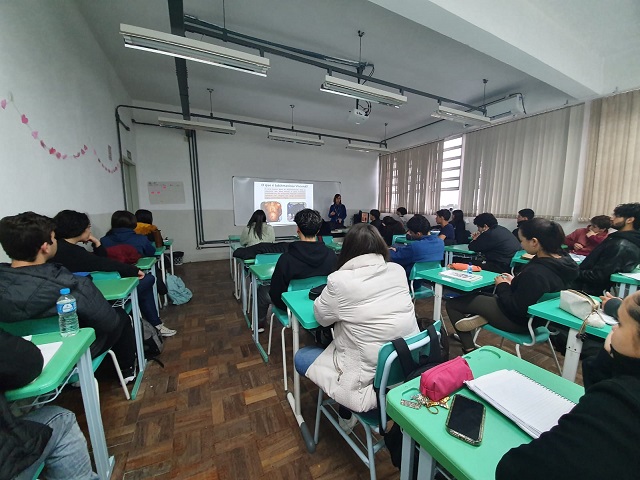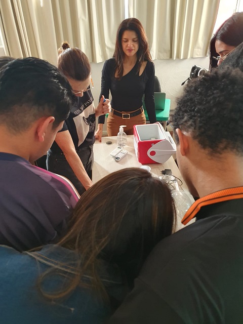 As aulas abordaram o ciclo de transmissão da enfermidade infectoparasitária, sinais e sintomas, formas de tratamento, controle e prevenção. Os alunos também tiveram a oportunidade de conhecer como ocorre o diagnóstico, com a prática, em sala de aula, da aplicação do teste rápido para triagem, imunocromatográfico, para a detecção, em cães, de anticorpos para Leishmania. Foram também apresentadas armadilhas para captura de flebotomíneos, importante instrumento para monitoração da incidência de casos na região.