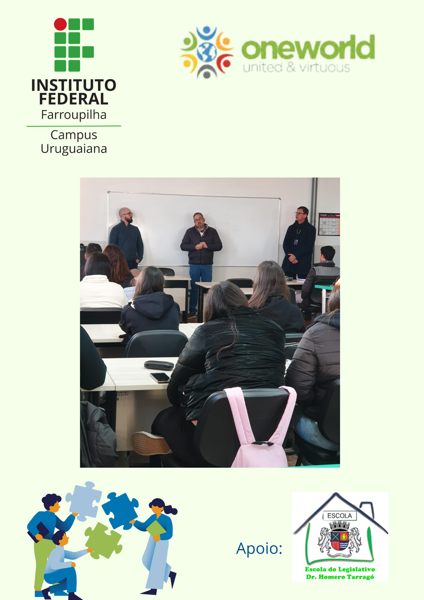 O projeto internacional, proposto pela One World e desenvolvido pelo IFFar Uruguaiana, envolve ensino, pesquisa, extensão, inovação e internacionalização em Casa. Como resultado da PPI, temos 33 soluções locais desenvolvidas por estudantes.