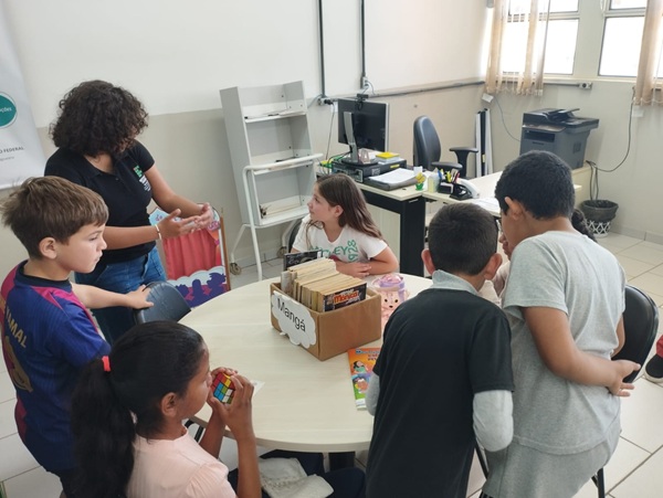 Atualmente em sua segunda edição, o Projeto Jogando com a Matemática busca consolidar os conhecimentos lógico-matemáticos adquiridos nos anos iniciais do ensino fundamental por meio de jogos que exploram conteúdos matemáticos. A iniciativa é coordenada pela professora Lucélia Kowalski e conta com a colaboração das bolsistas Isadora e Ana Luiza.