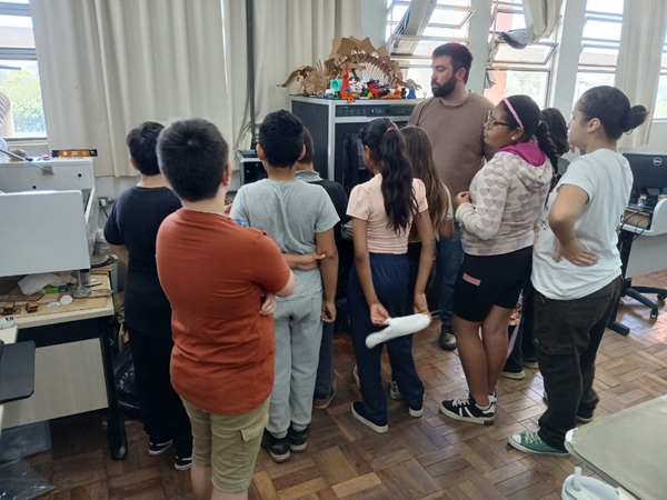 Na última Quinta-feira, 25 de setembro, os alunos de duas turmas de 5º ano da EMEF Cabo Luiz Quevedo, participantes do Projeto Jogando com a Matemática, realizaram uma visita ao Campus Uruguaiana. As turmas, acompanhadas pelas professoras regentes Katiusa e Oristela, visitaram o campus a fim de conhecer o LabMaker, espaço onde são produzidos a maior parte dos jogos utilizados no projeto.