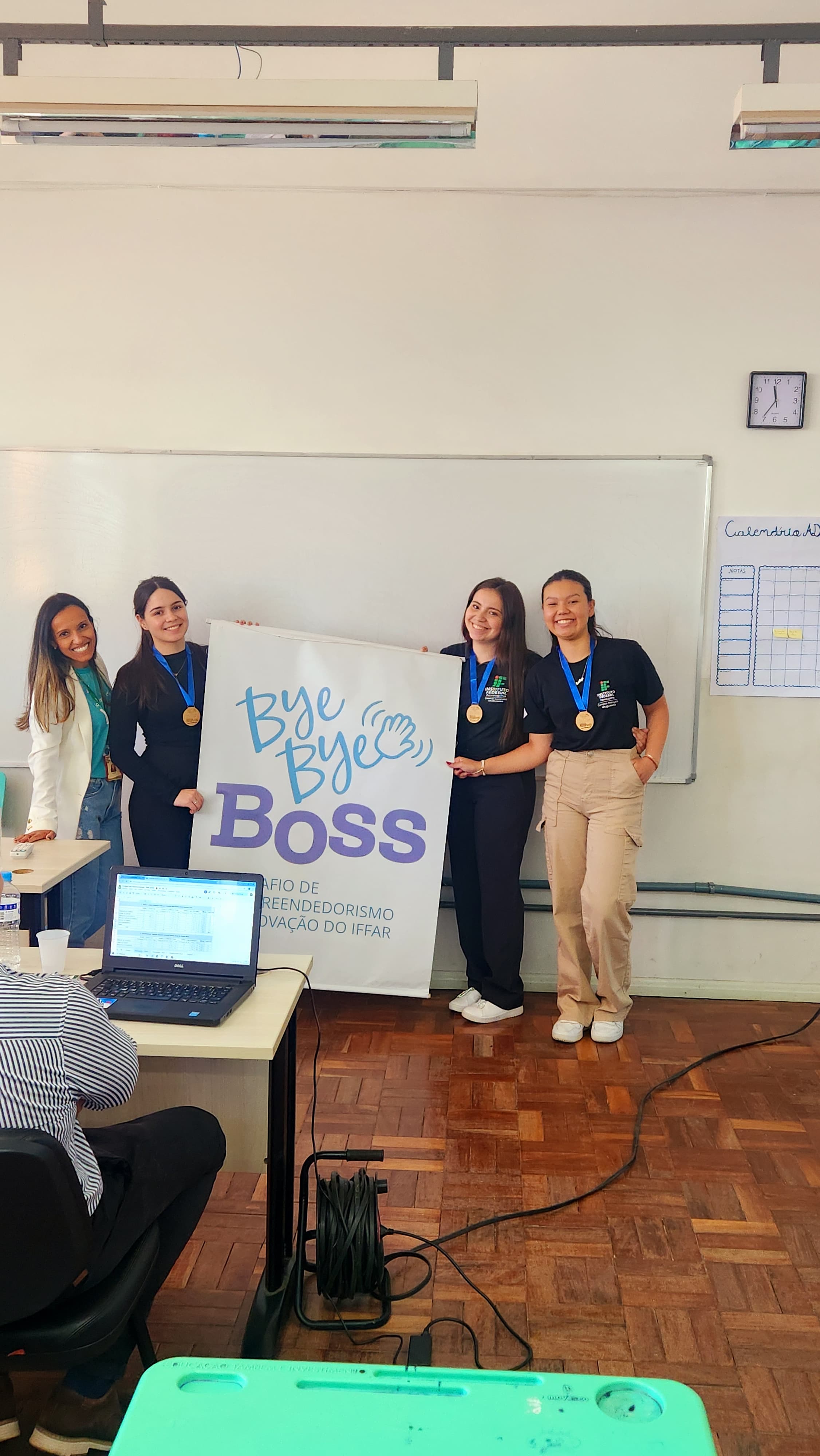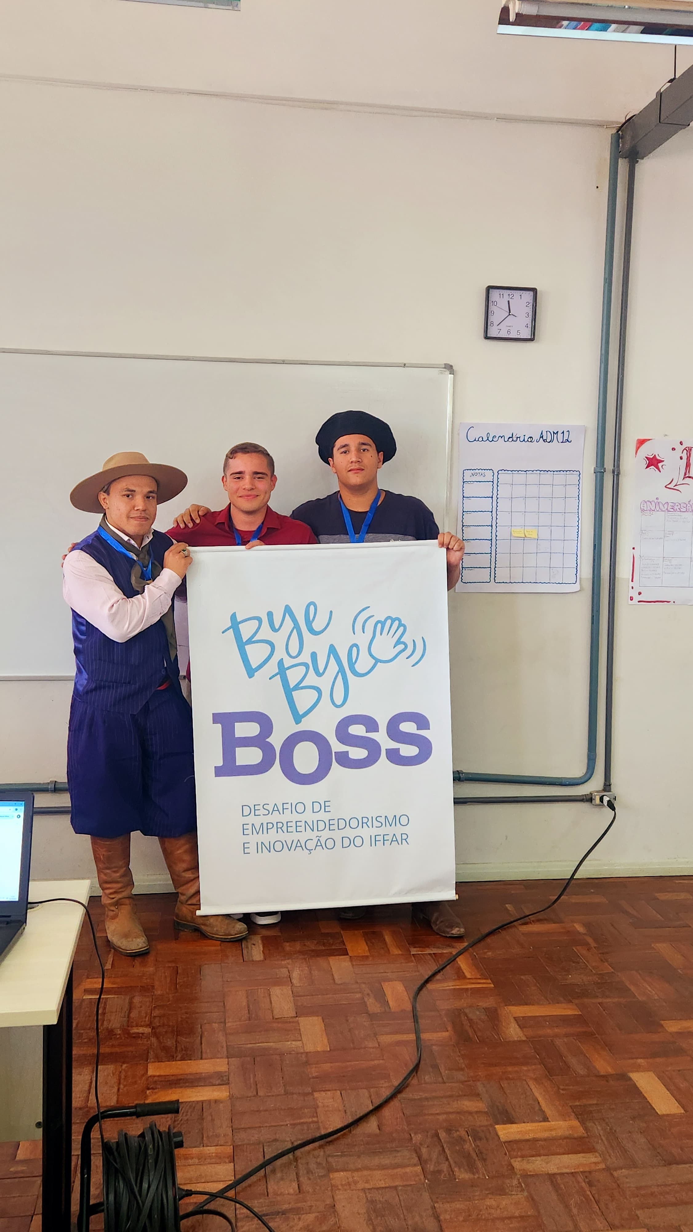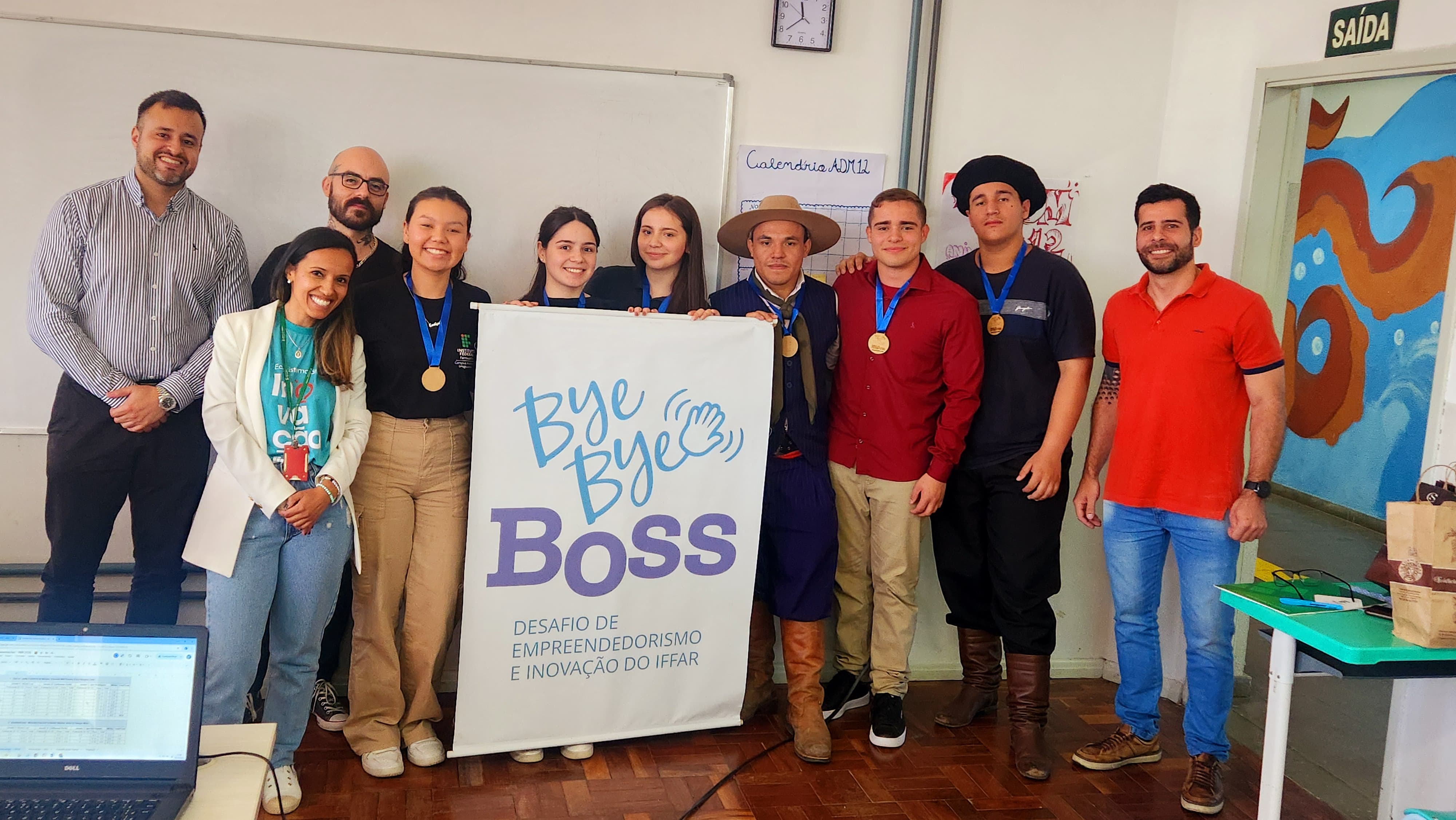 No sábado do dia 18 de Outubro aconteceu a etapa local da competição de empreendedorismo e inovação do IFFAR o Bye Bye Boss. Neste ano 20 equipes se inscreveram entre as modalidades Inovação Tradicional e Educação (Edutech) e no final uma equipe de cada uma das modalidades foi escolhida. A banca avaliadora foi composta por membros externos pertencentes ao Ecossistema Local de Inovação: Bruno Luz – Diretor de Inovação do Município, Guilherme Perlin- Agente Local de Inovação e Igor Rodrigues – fundador do Alerta Aí empresa residente na Incubadora do IFFAR. Foram classificadas para a Etapa Final, em Santa Rosa dia 6 de novembro, as equipes SaniBov dos estudantes do técnico integrado em informática e o do técnico integrado em administração Verlei Tedy Moreira Filho, Mateus Cuty , Cristian da Silveira Lopes na categoria Inovação Tradicional e na categoria Educação as estudantes do curso técnico em administração Emilyn Borda Medeiros , Ingrid Ramos da Silveira , Nicólly Vitória Aimon com a InovaEdu. Parabéns a todos os estudantes por todo o empenho e dedicação em mais esta etapa do BBB. O Bye Bye Boss é uma organização do NIT Local em parceria com a Incubadora do IFFAR.