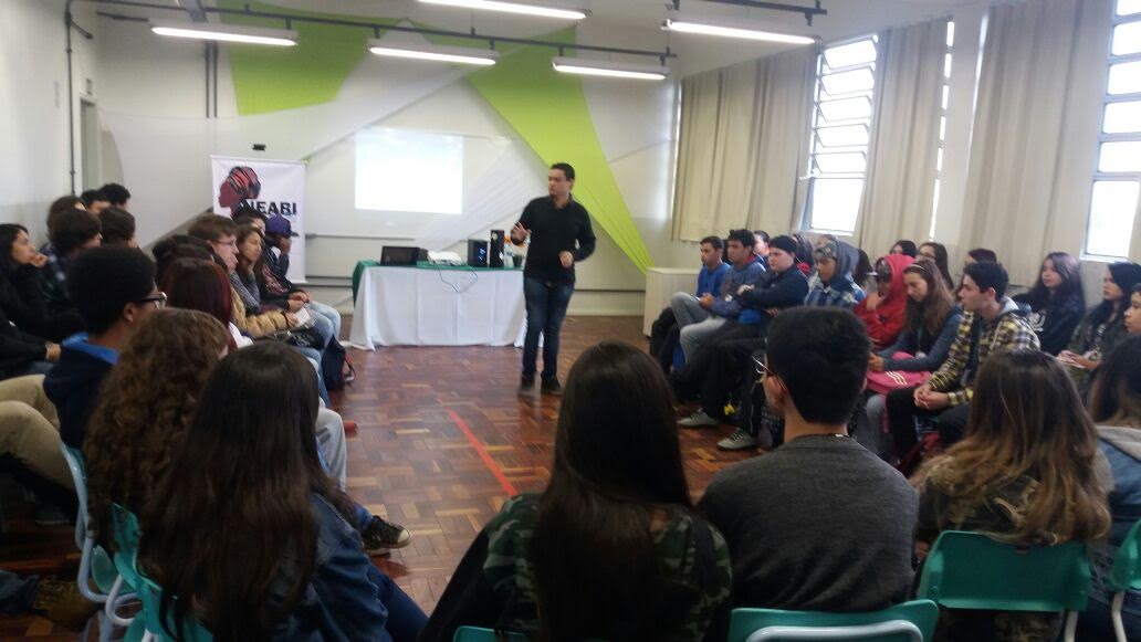 Palestra promovida pelo NEABI do campus, com a presença de Diego Matos Noronha, integrante do NEABI - UNIPAMPA - Campus Uruguaiana e aluno da Especialização em História e Cultura Africana, Afro brasileira e Indígena, abordou o tema "Desigualdade racial: políticas públicas” que organizou uma excelente dinâmica sobre diversidade e identidade, na qual houve uma participação efetiva dos alunos do IFFar.