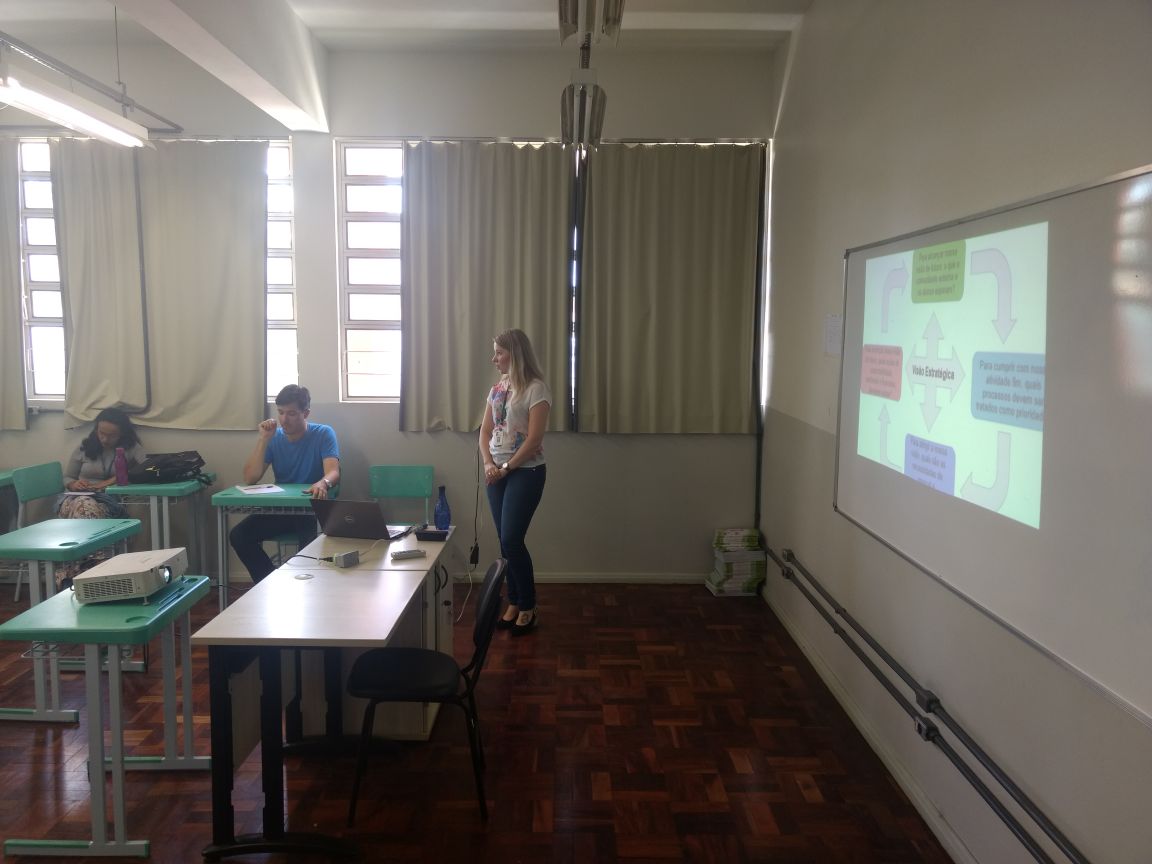 A docente Deise Dickel realizou breve apresentação sobre a metodologia a ser implantada, abordou sobre as matrizes SWOT e Balanced Scorecard (BSC). Todos os presentes puderam dar sugestões, as quais foram compiladas e serão encaminhadas à Comissão Central do PDI para contribuir na construção do referido Plano.