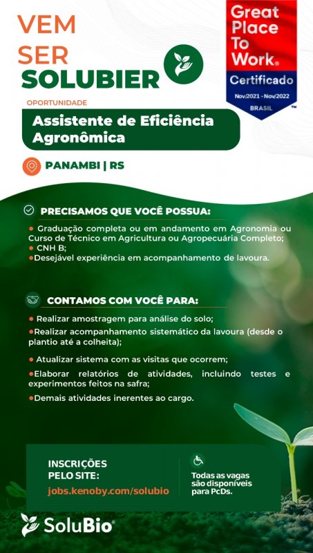 Página inicial > Oportunidades de Emprego > Assistente de Eficiência Agronômica - Panambi, RS