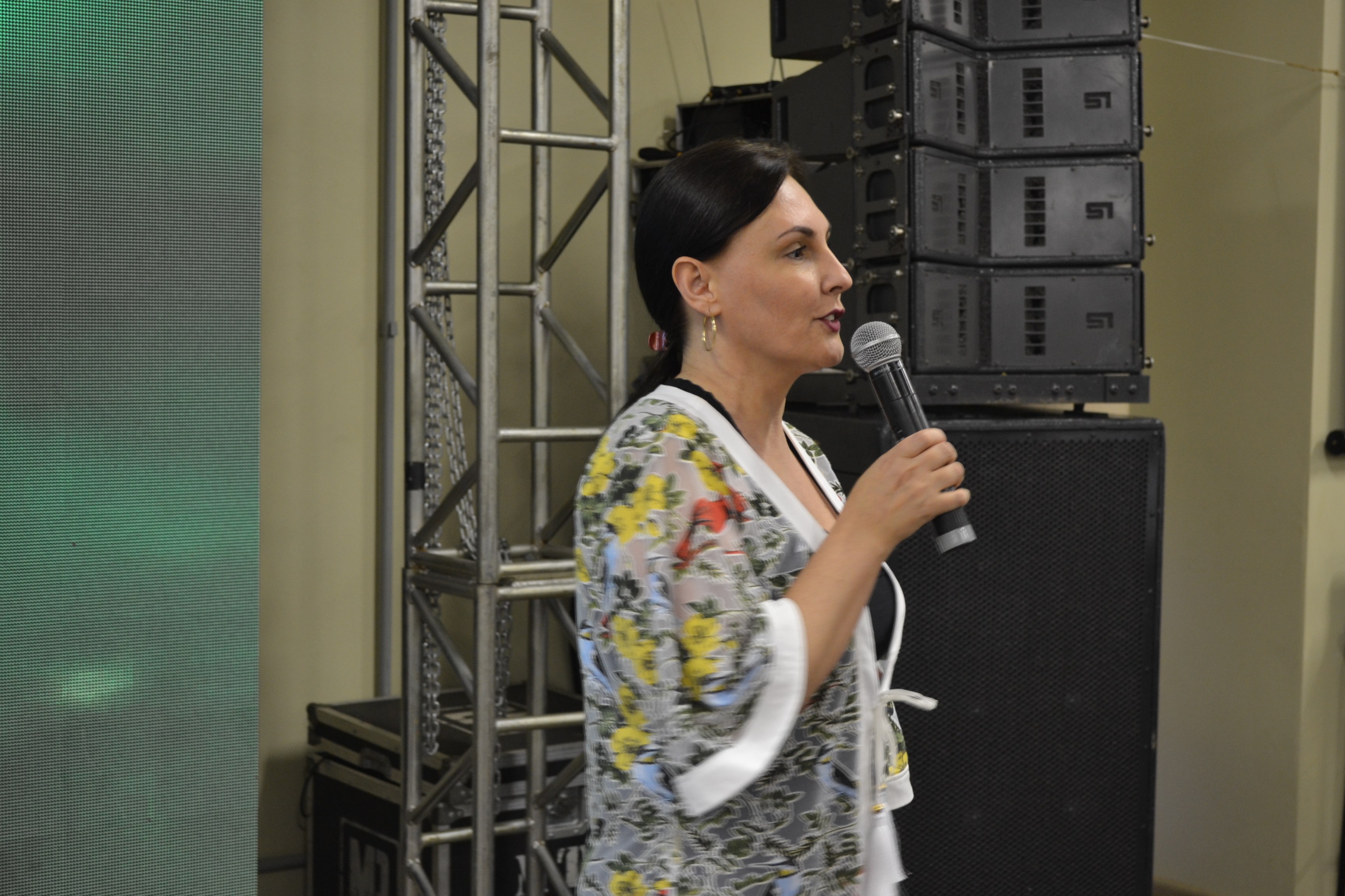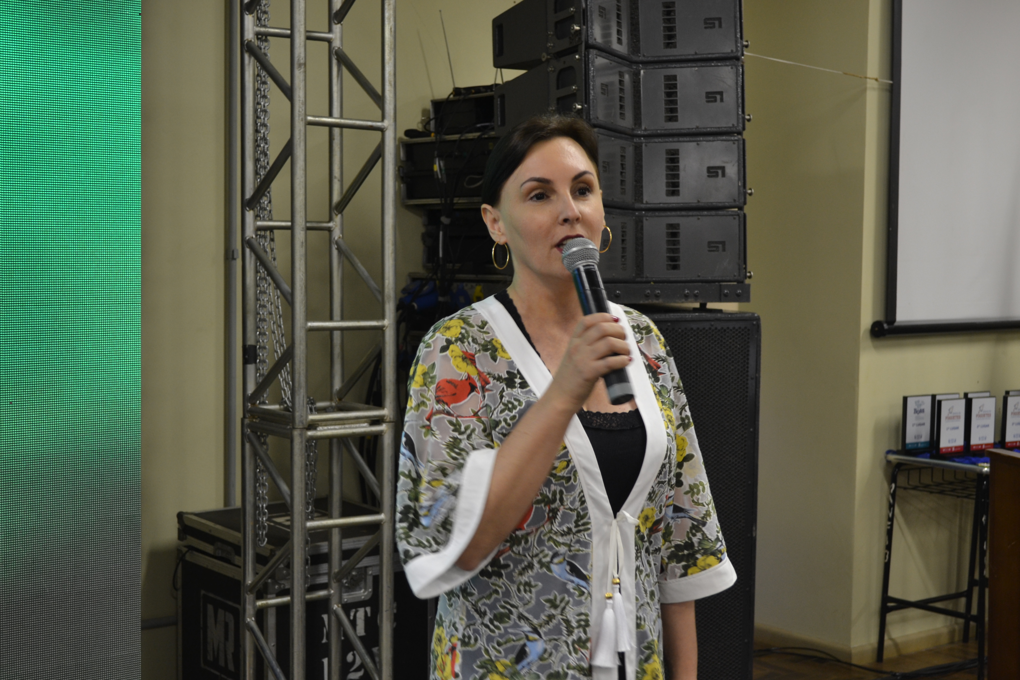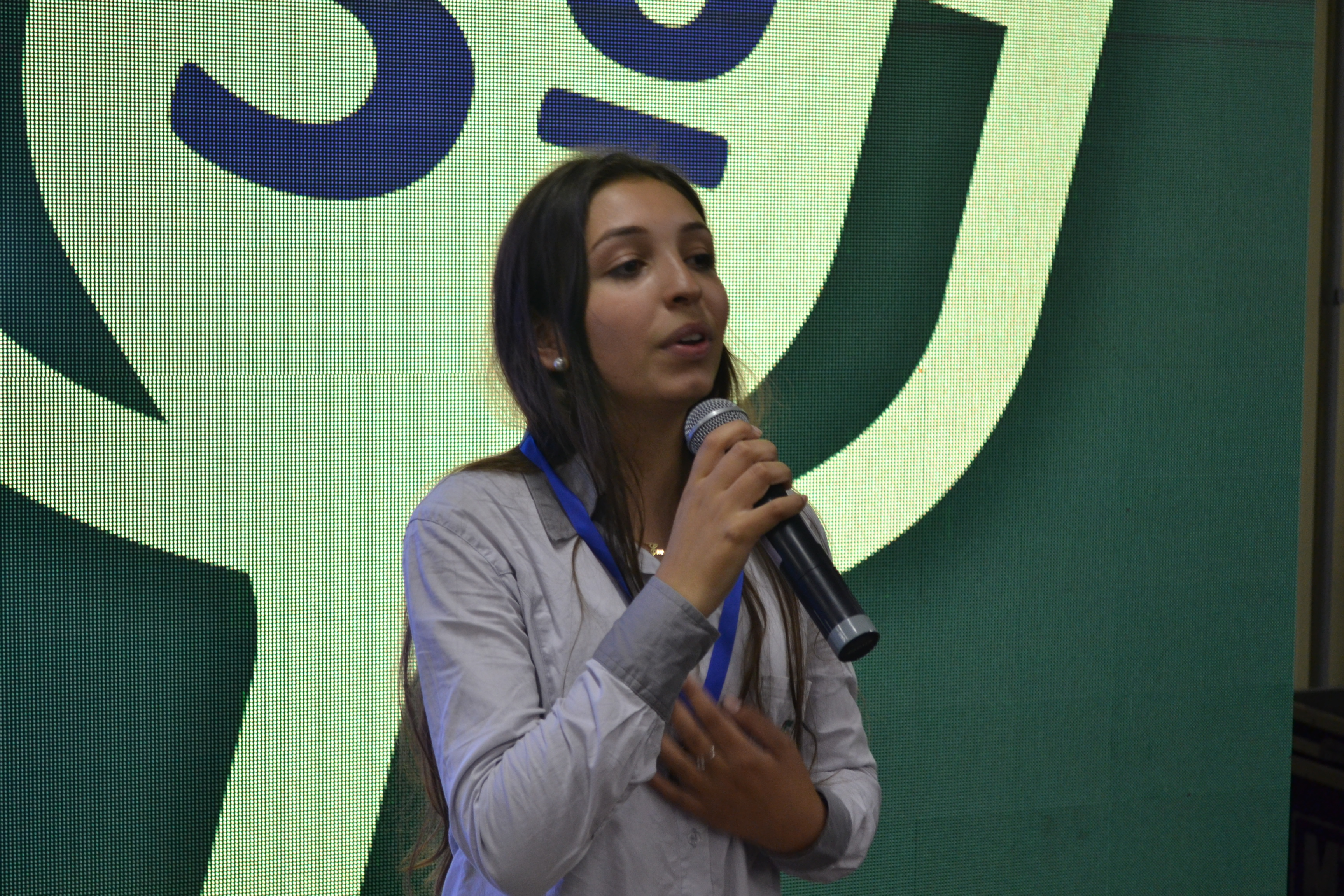 Foto: aluna do campus Santa Rosa apresenta idea sobre aplicativo de venda de plantas a empresários do estado