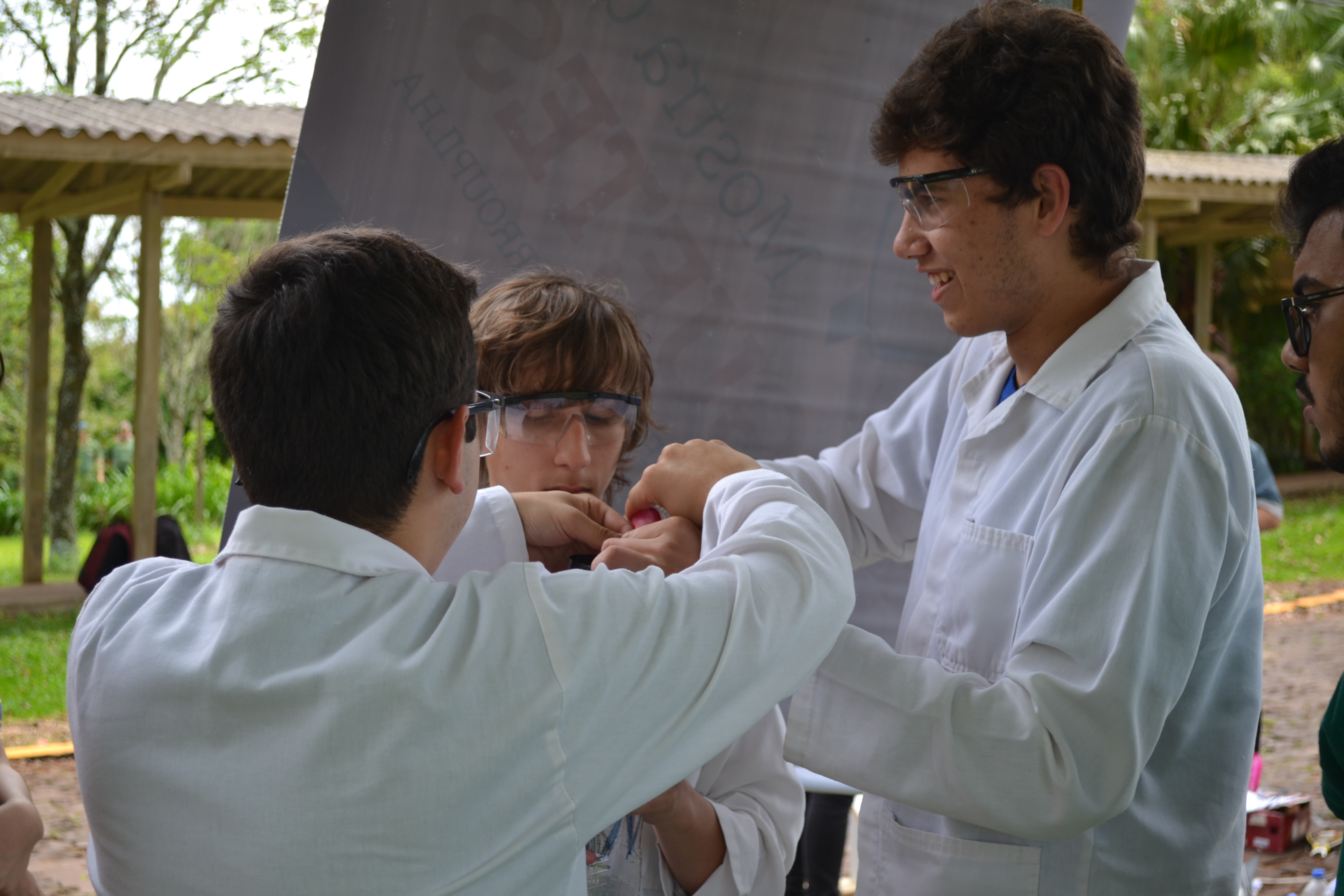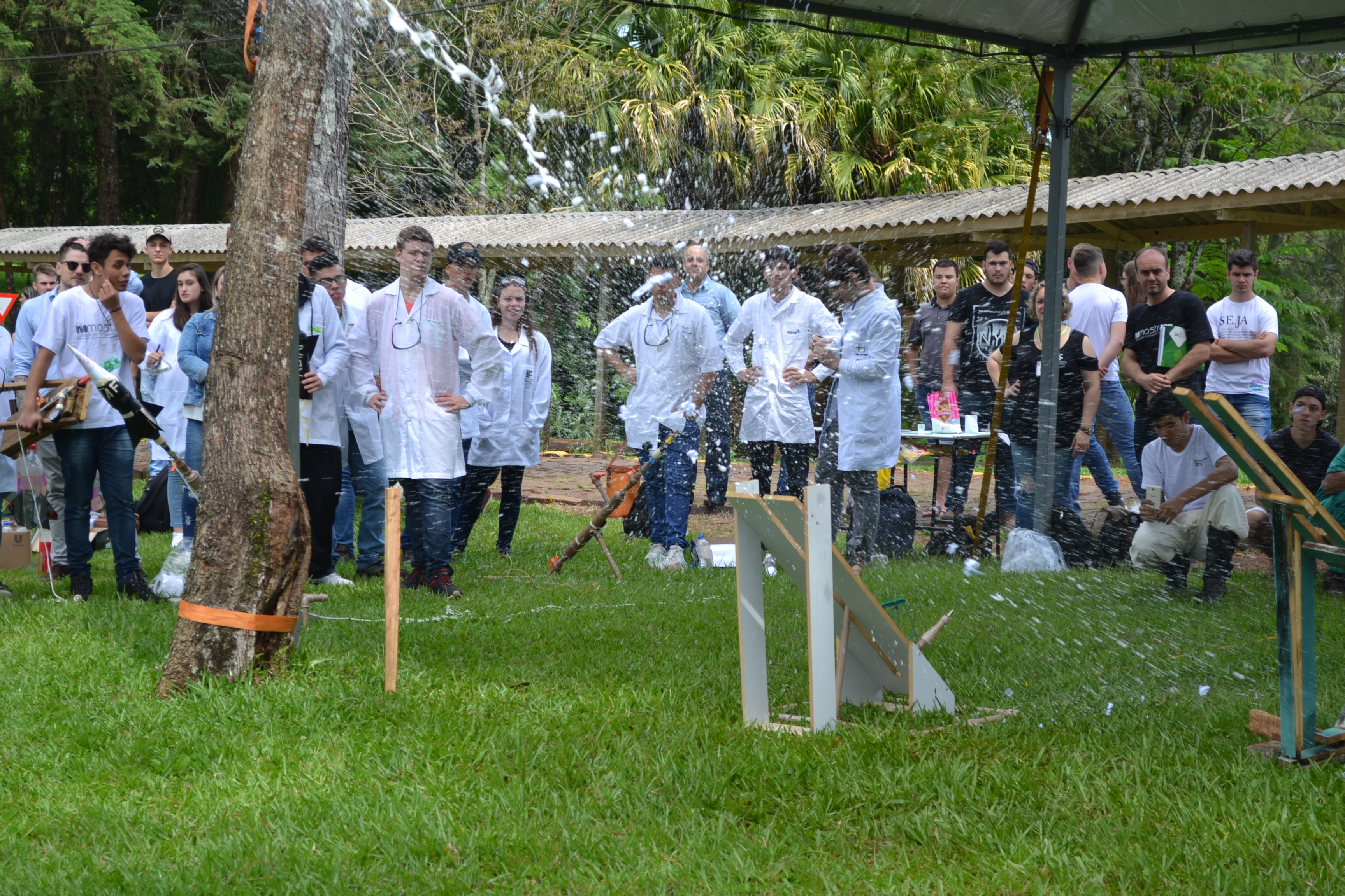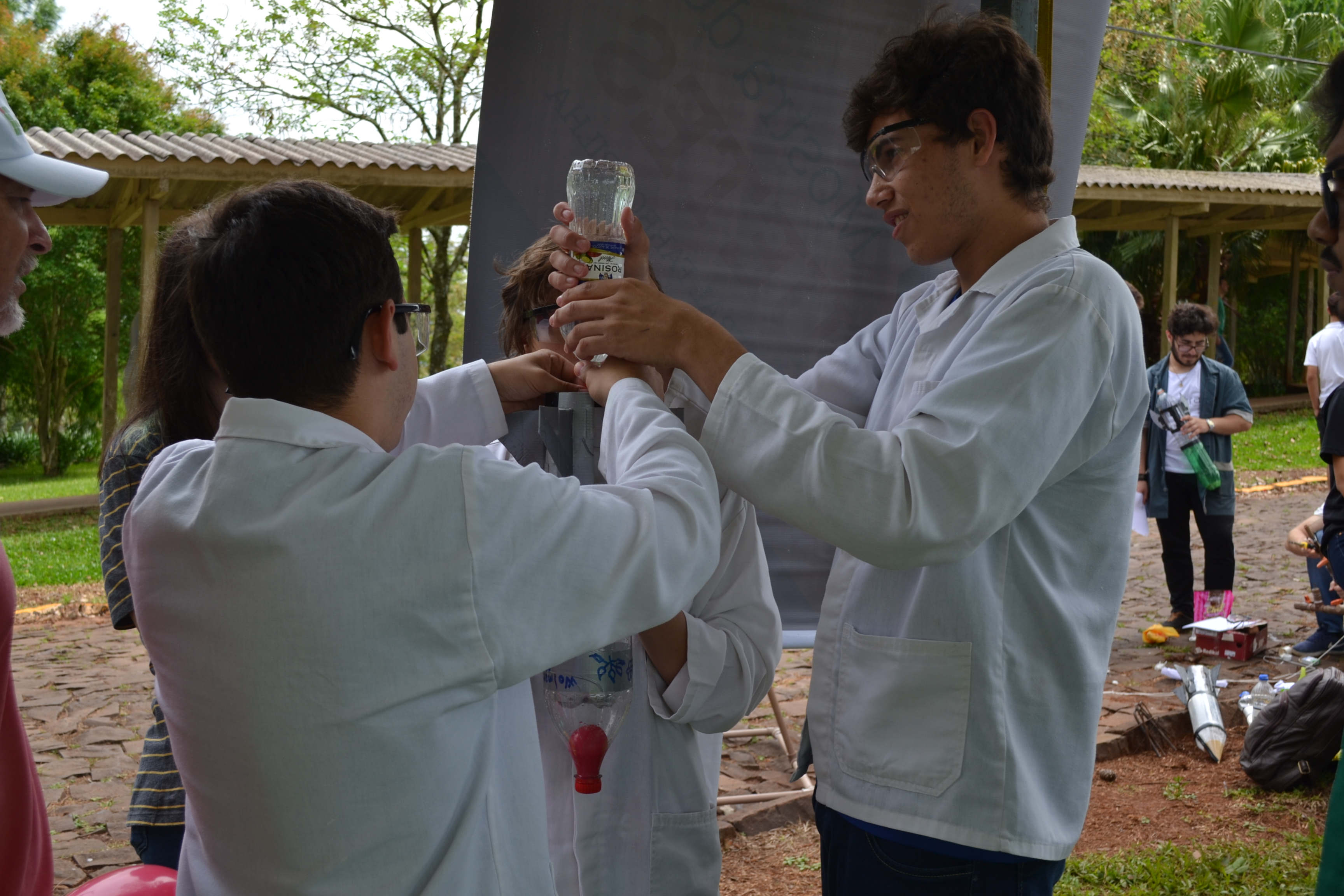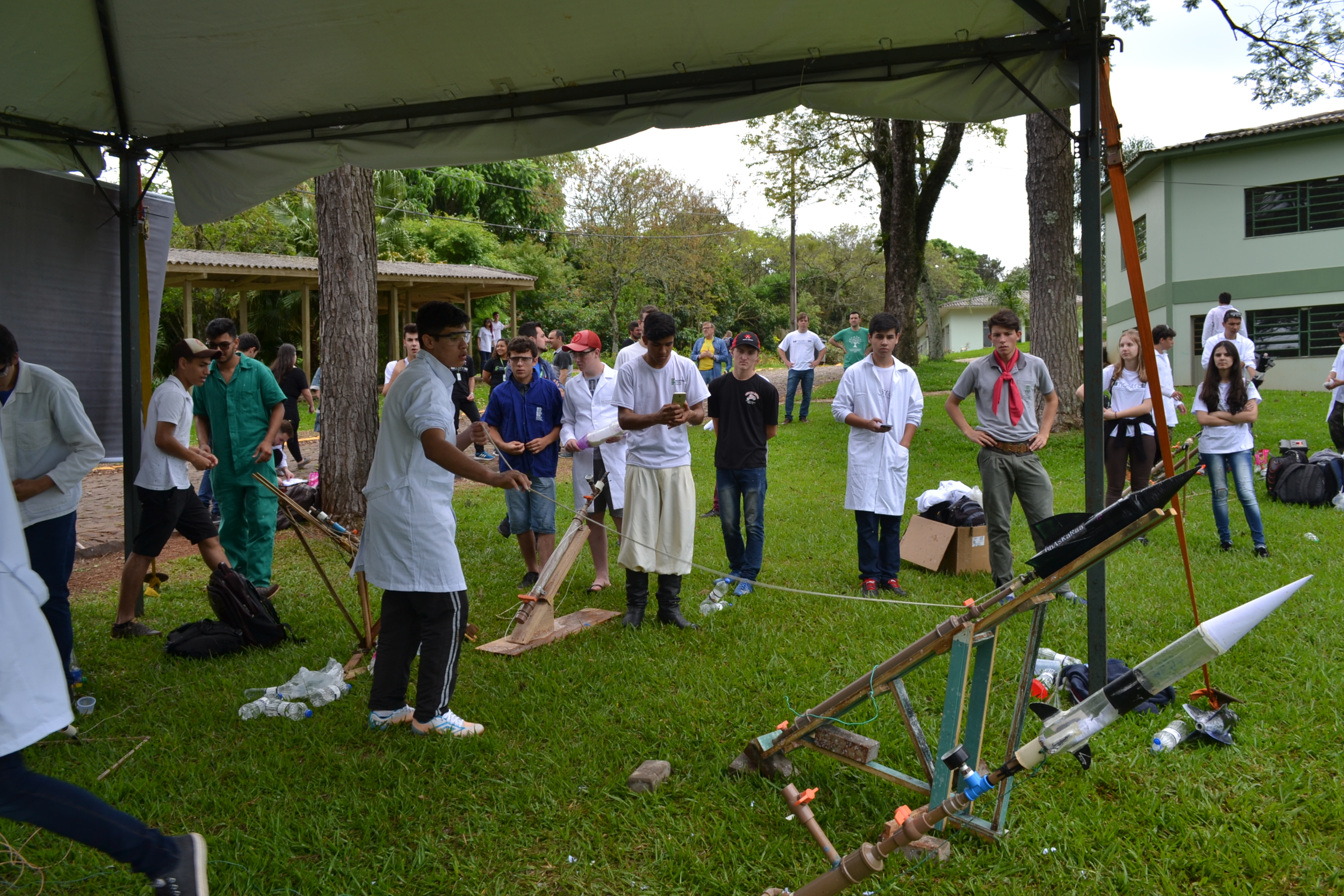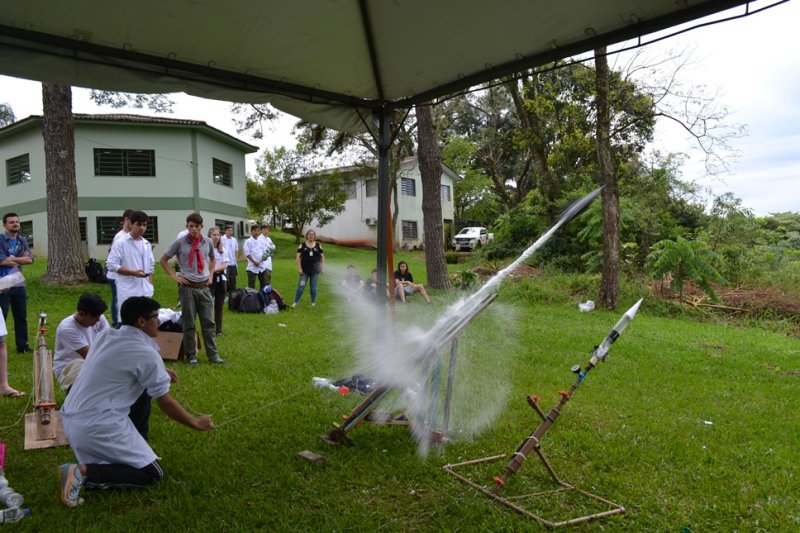 A Mostra de Foguetes é uma atividade interdisciplinar de alunos dos cursos técnicos integrados ao nível médio do IFFar. Os alunos montam equipes e, misturando conhecimentos de diversas áreas como física e química, montam foguetes impulsionados por reações químicas. Ganha a equipe que lançar o foguete mais longe. A aluna do 1º semestre do curso técnico em Administração, do Campus Avançado Uruguaiana, Maria Eduarda, explica que os foguetes são construídos com materiais reciclados e impulsionados pela reação entre vinagre e bicarbonato de sódio.