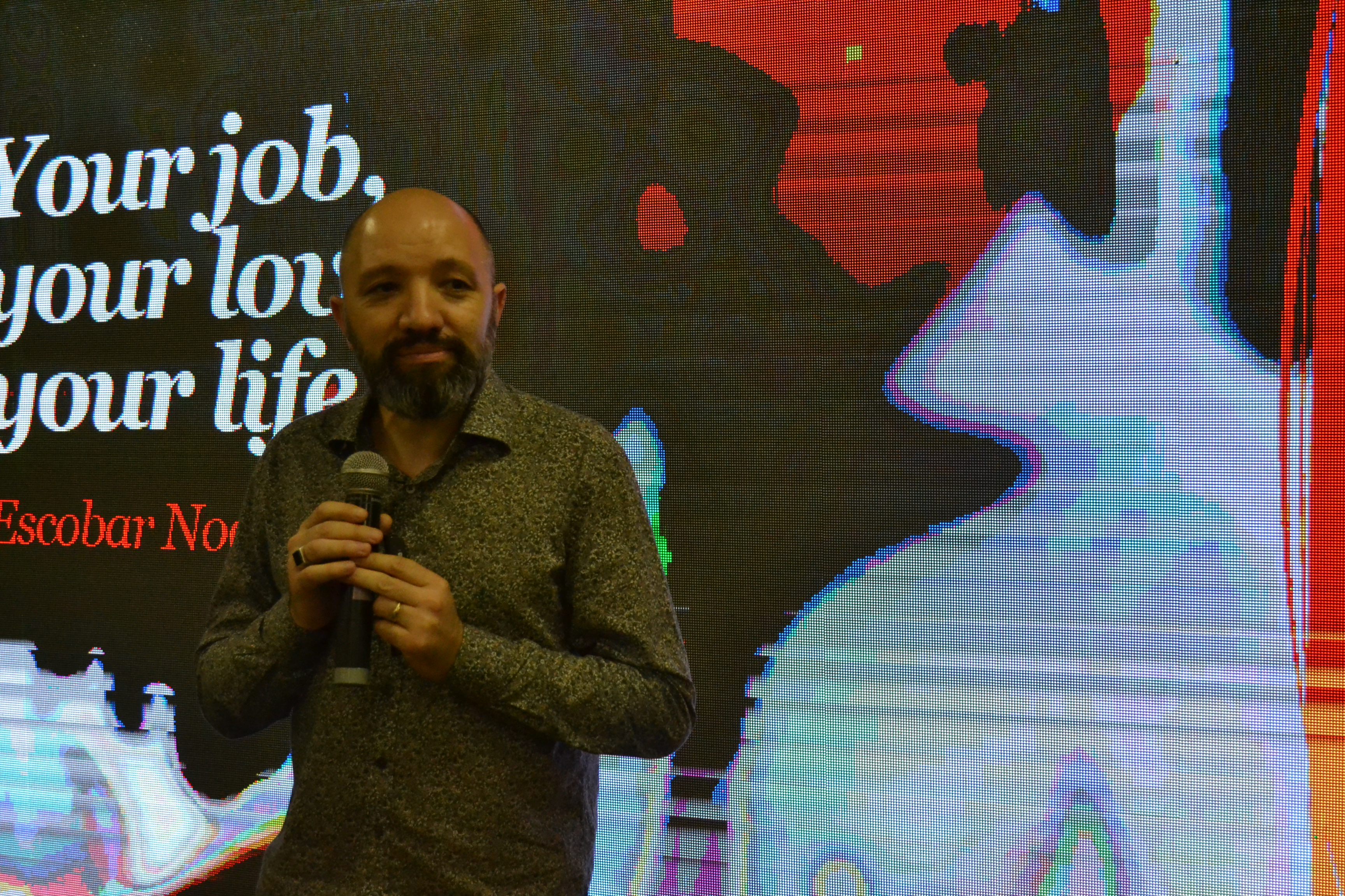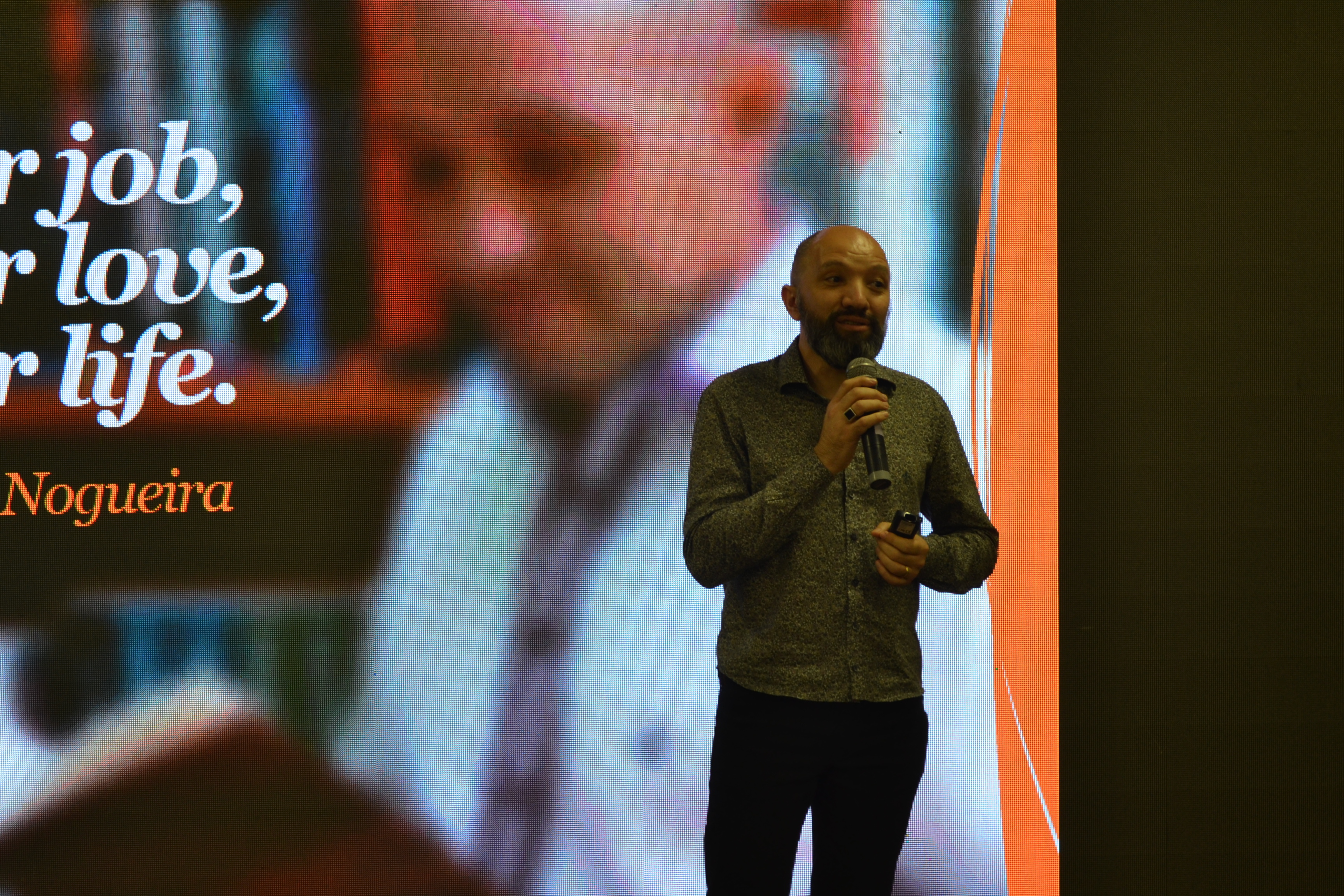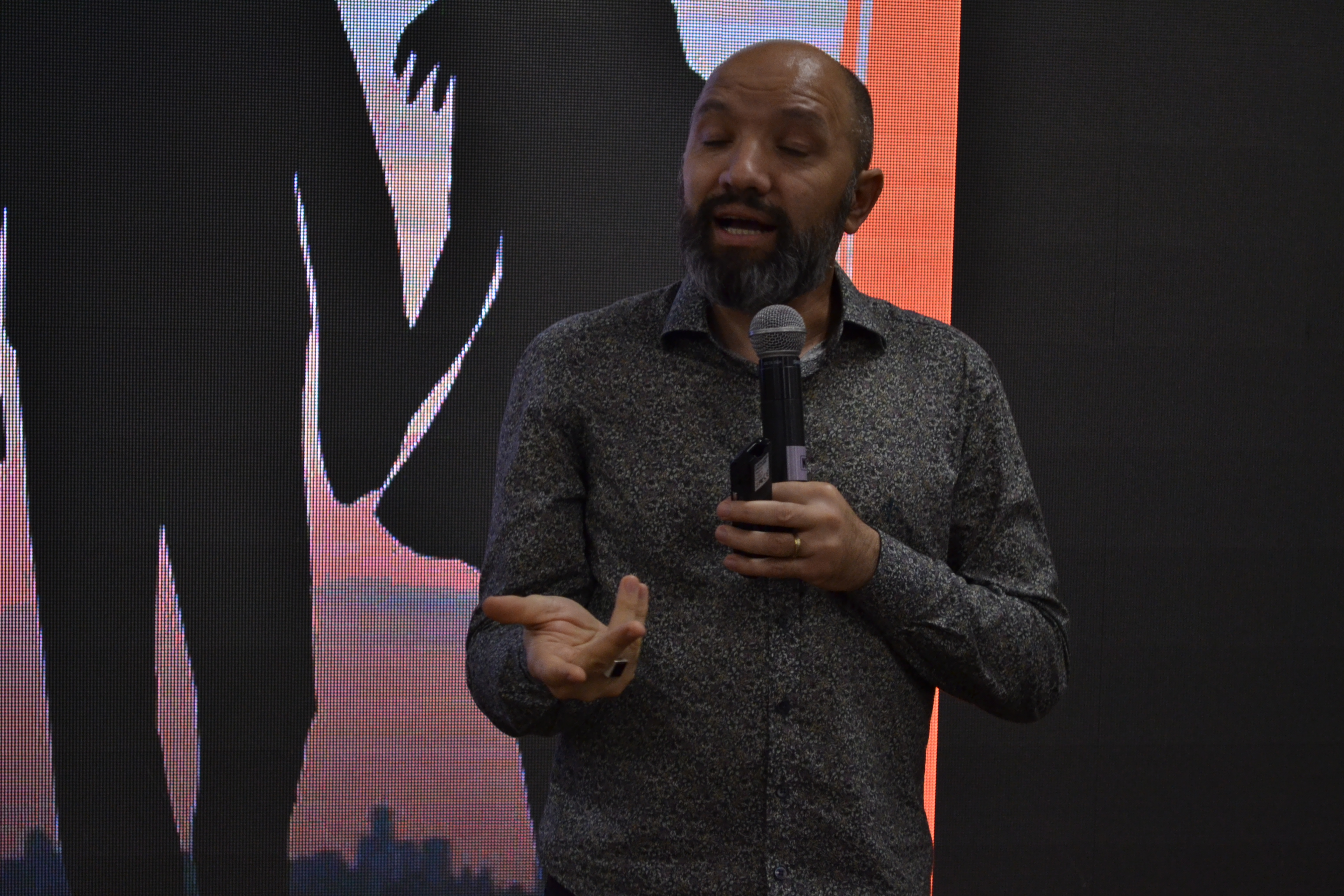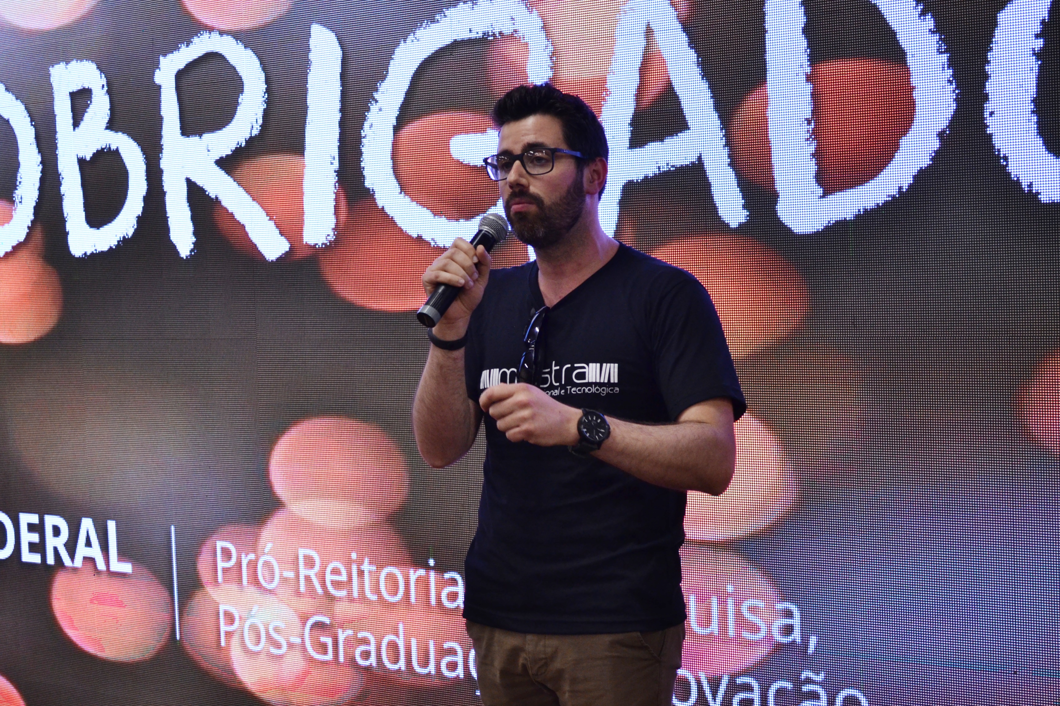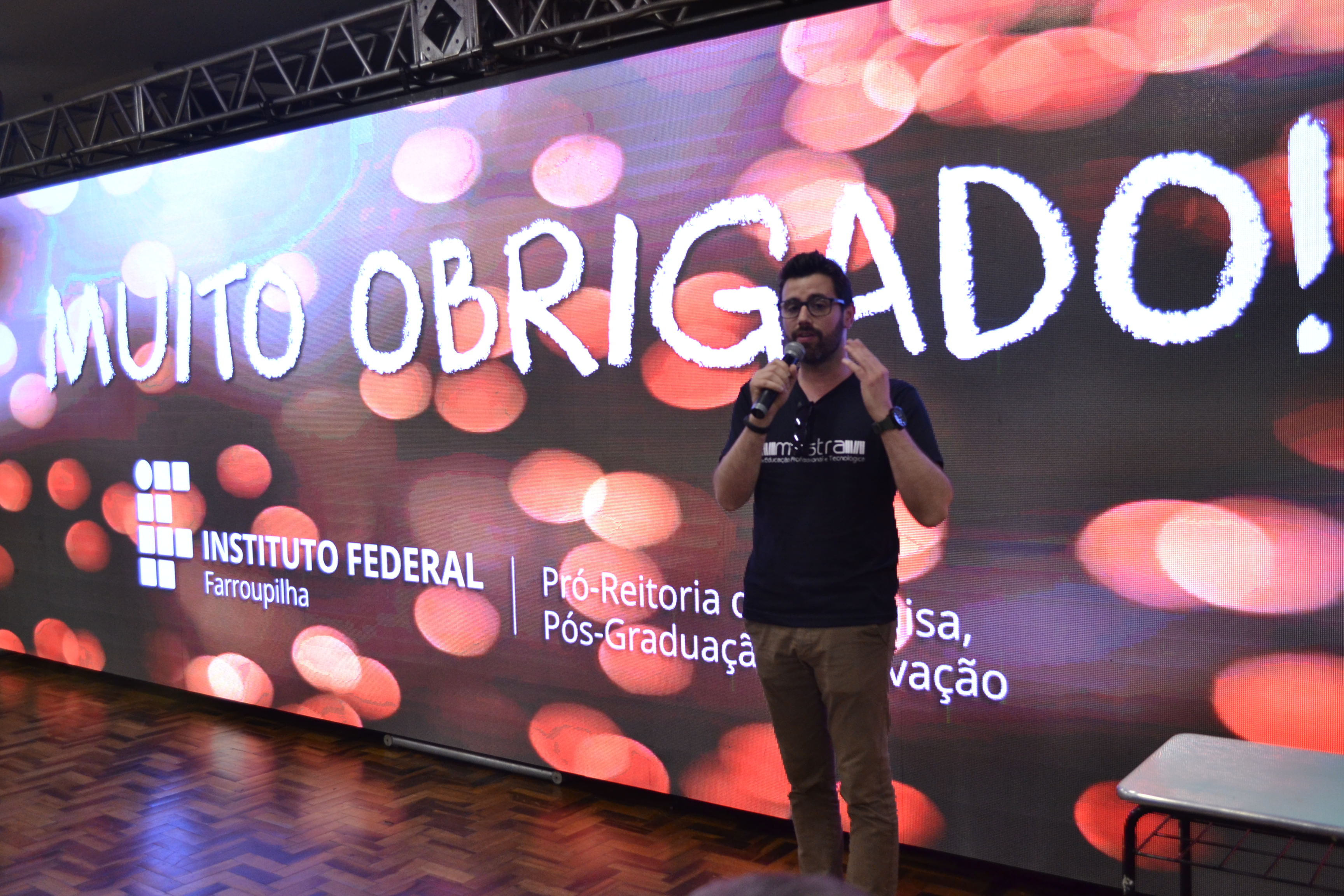 Finalizando a programação da IX Mostra de Educação Profissional e Tecnológica do IFFar, o palestrante Escobar Nogueira falou sobre o mercado de trabalho de forma divertida, relacionando carreira com relacionamentos amorosos.