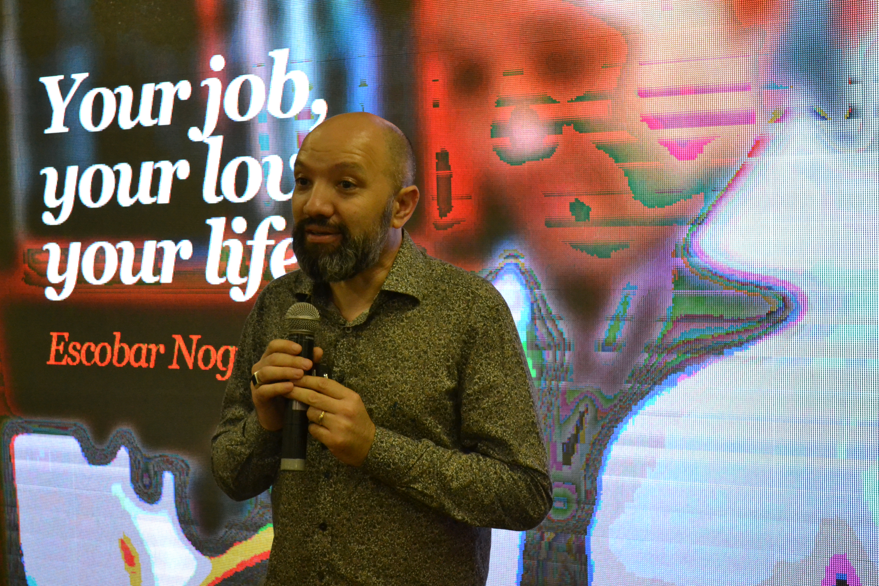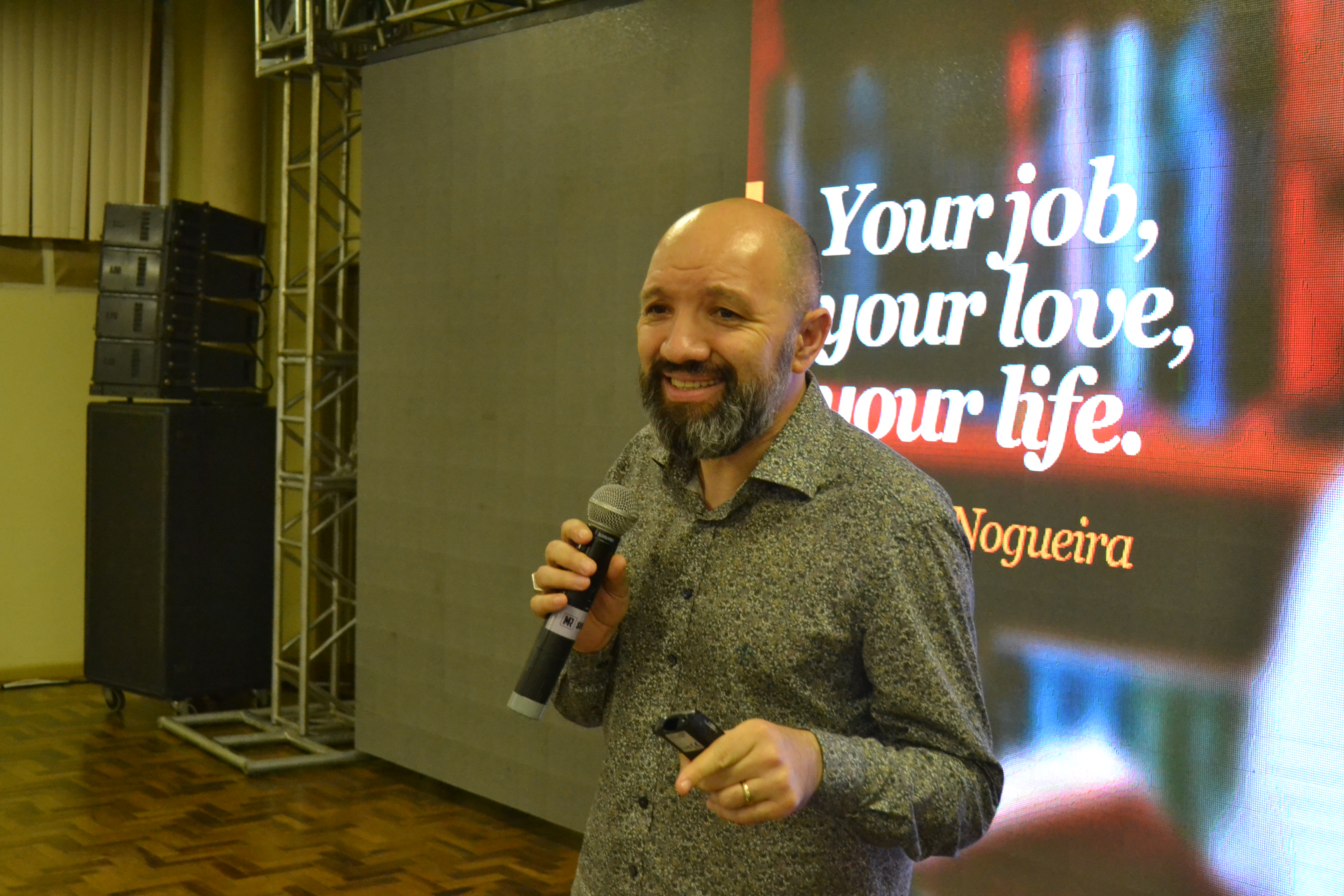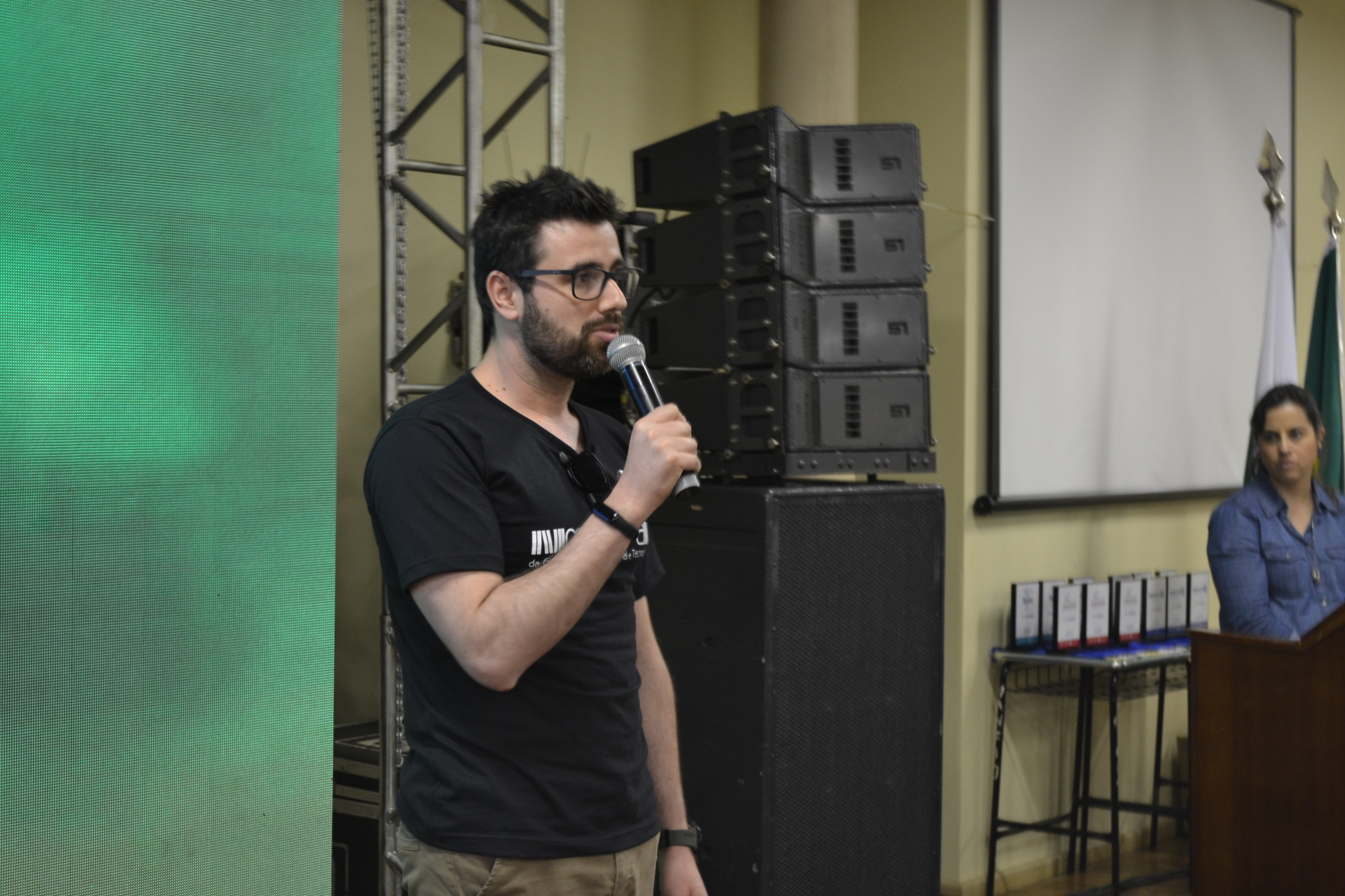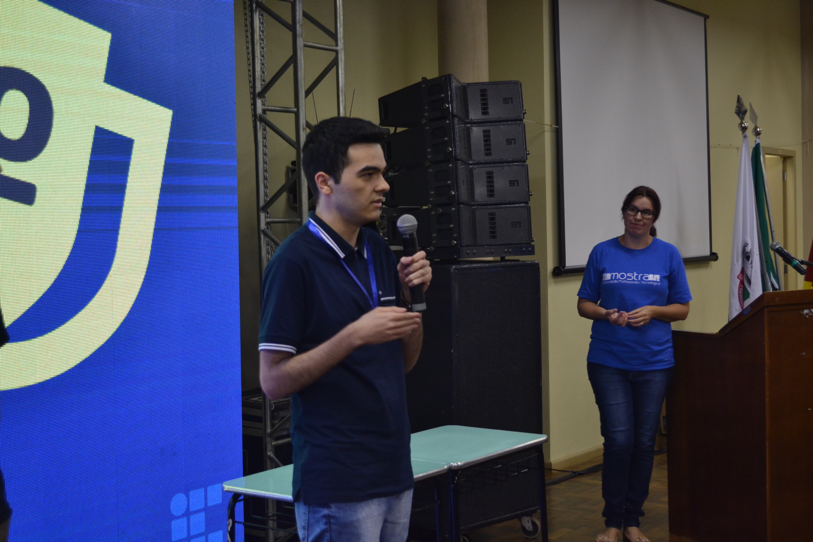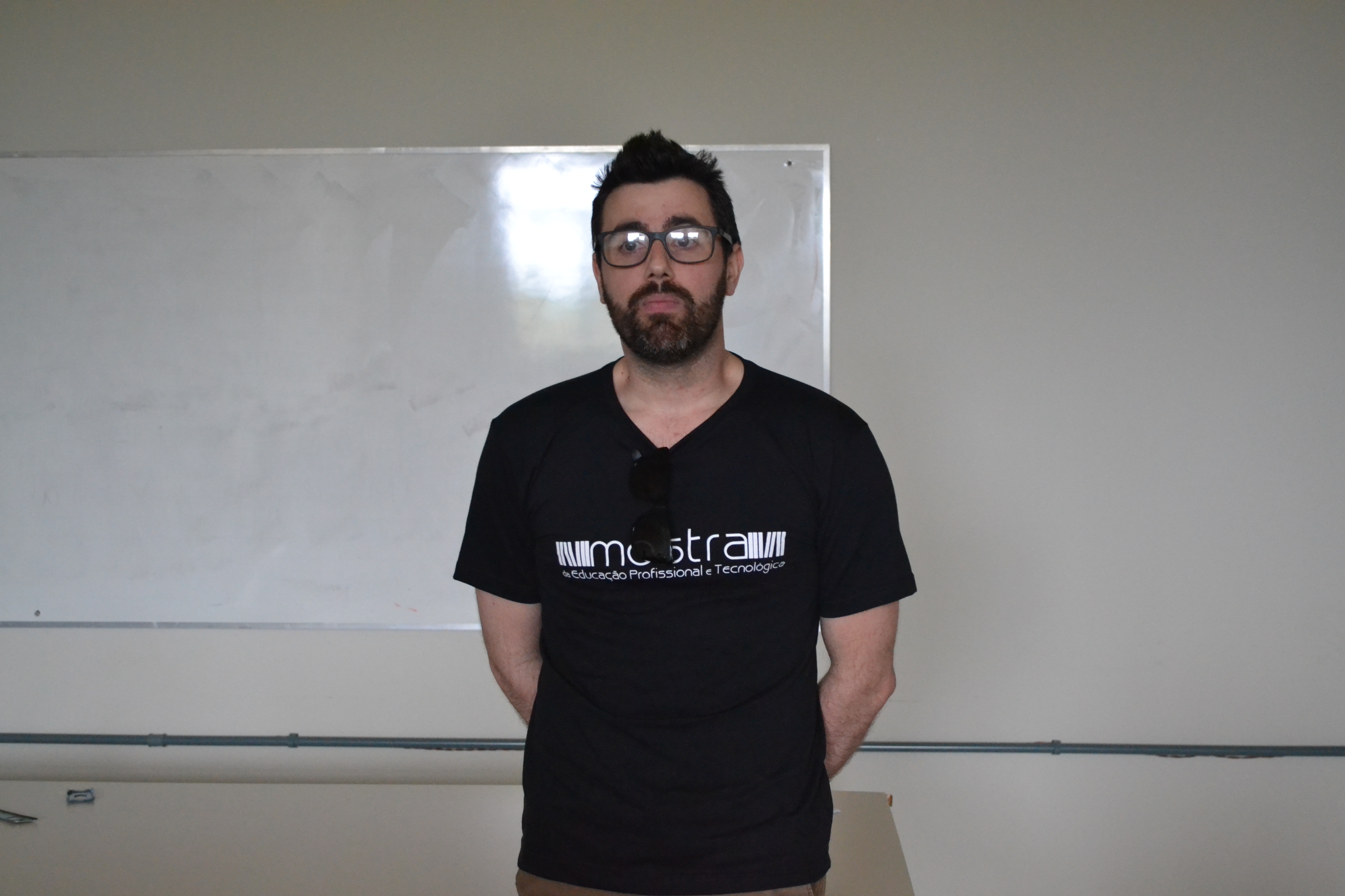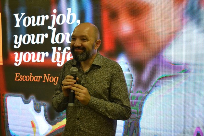 Finalizando a programação da IX Mostra de Educação Profissional e Tecnológica do IFFar, o palestrante Escobar Nogueira falou sobre o mercado de trabalho de forma divertida, relacionando carreira com relacionamentos amorosos.