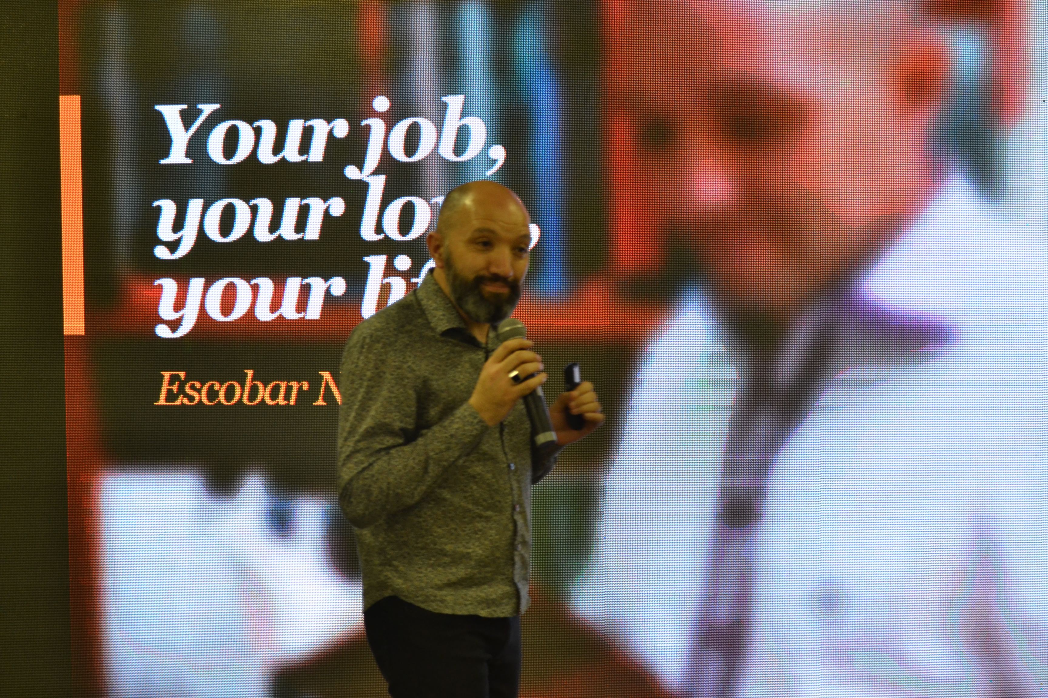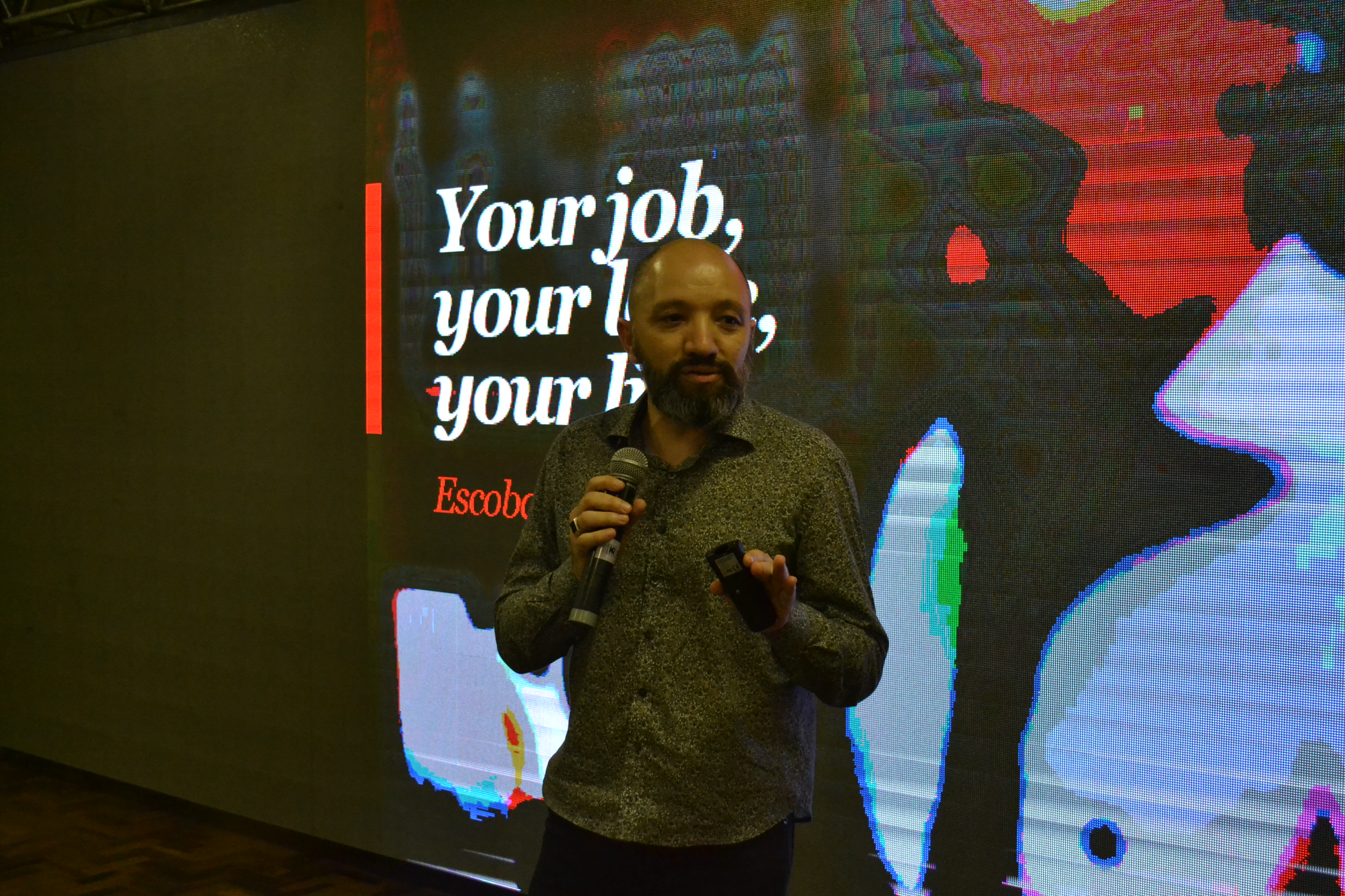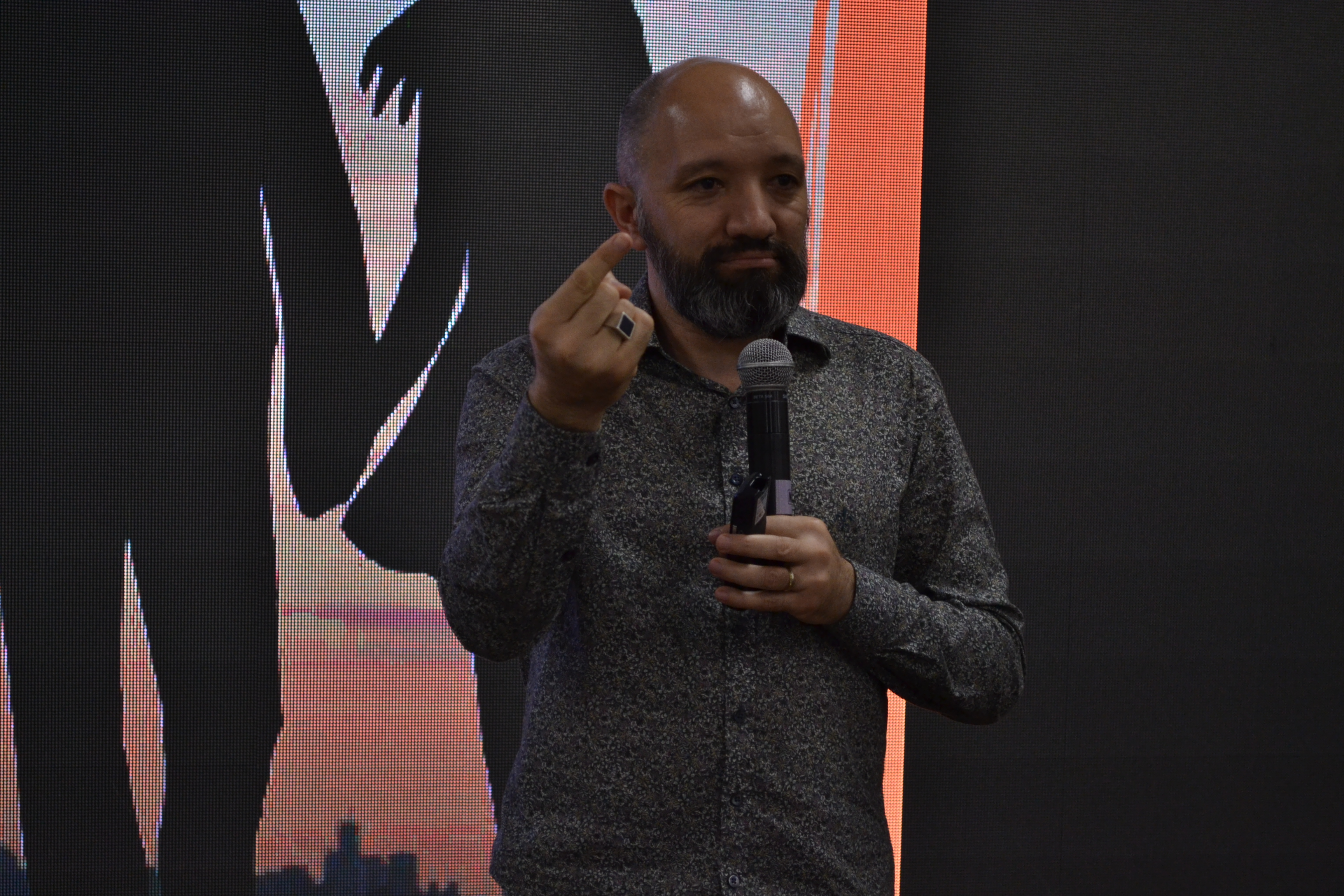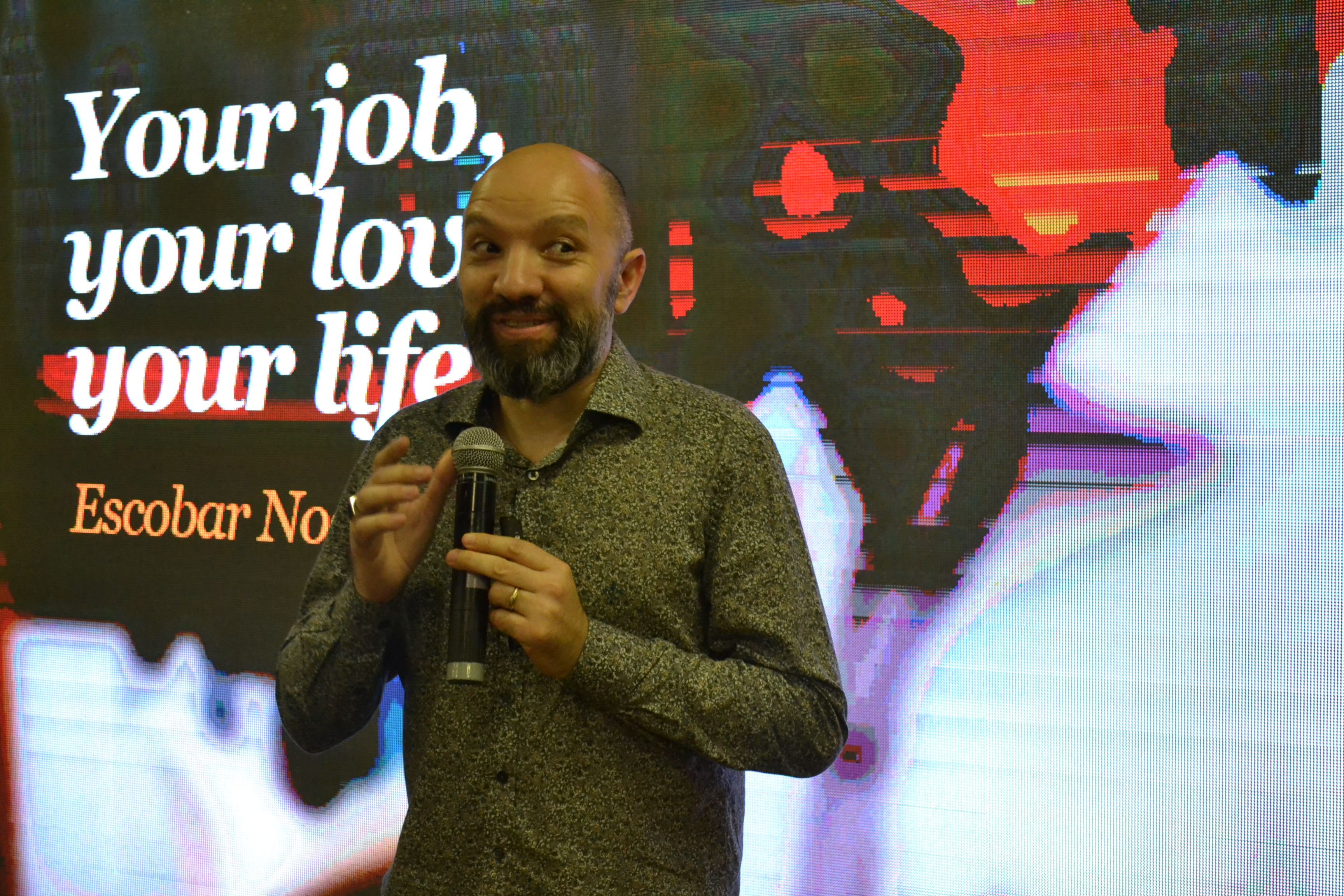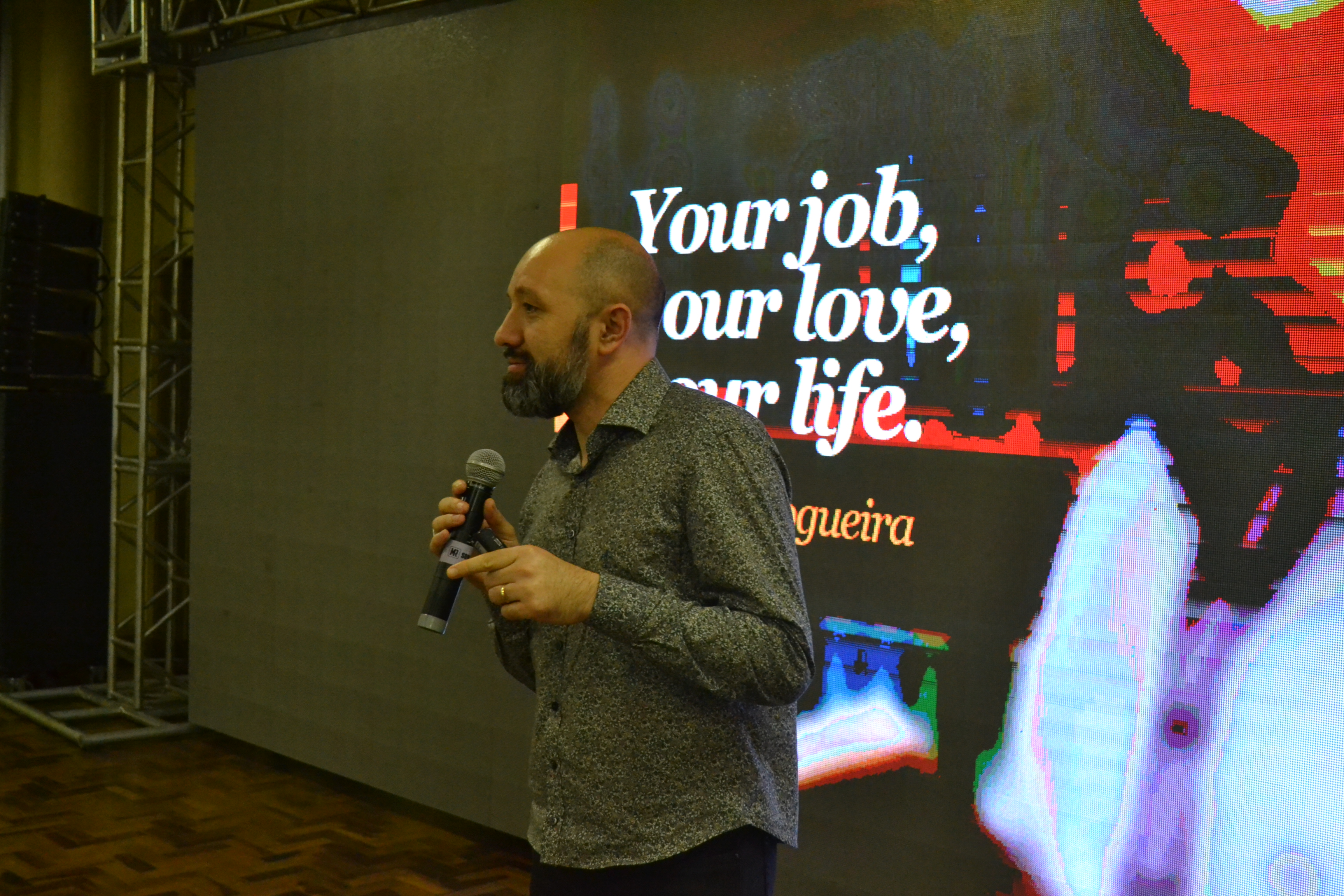 Finalizando a programação da IX Mostra de Educação Profissional e Tecnológica do IFFar, o palestrante Escobar Nogueira falou sobre o mercado de trabalho de forma divertida, relacionando carreira com relacionamentos amorosos.