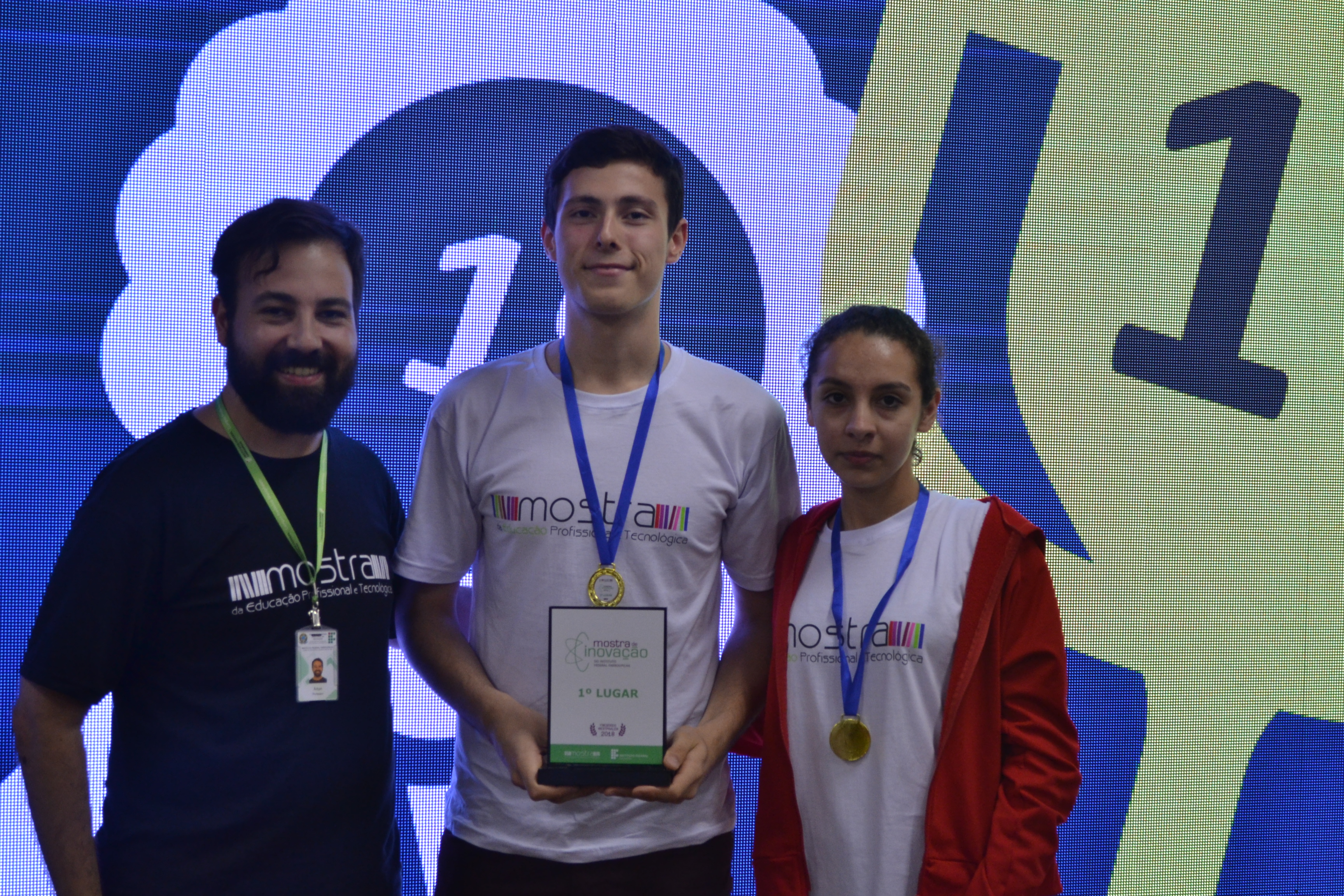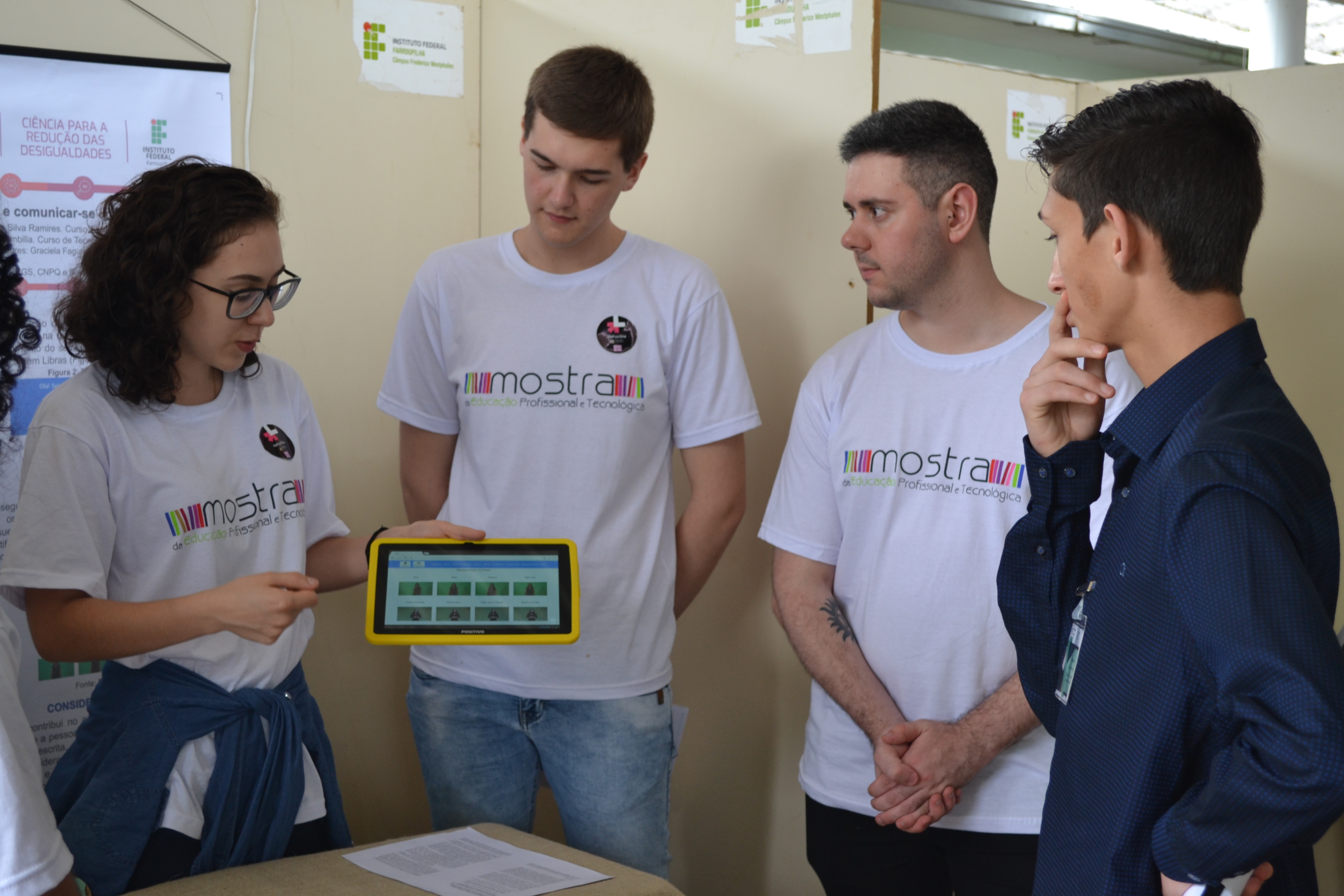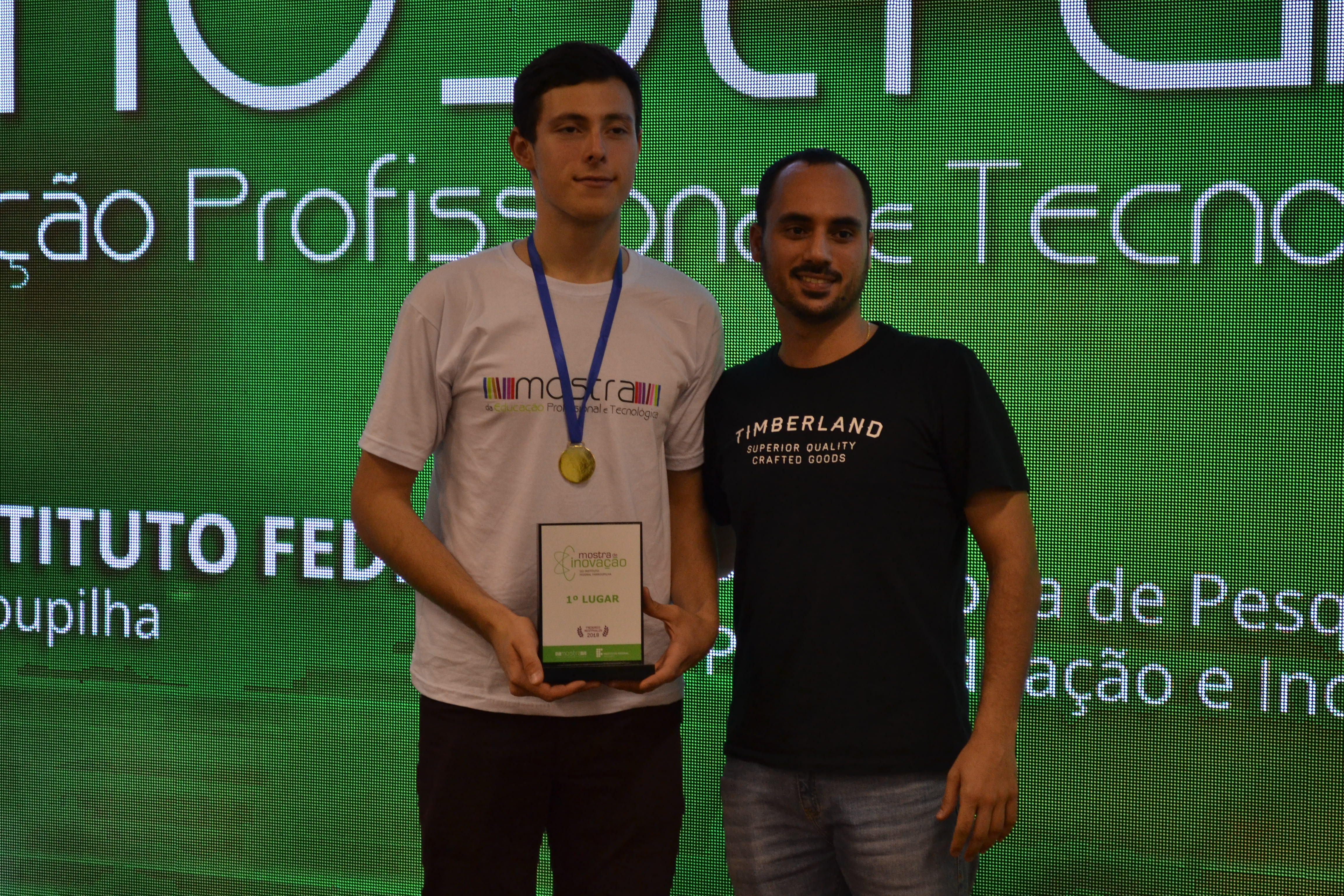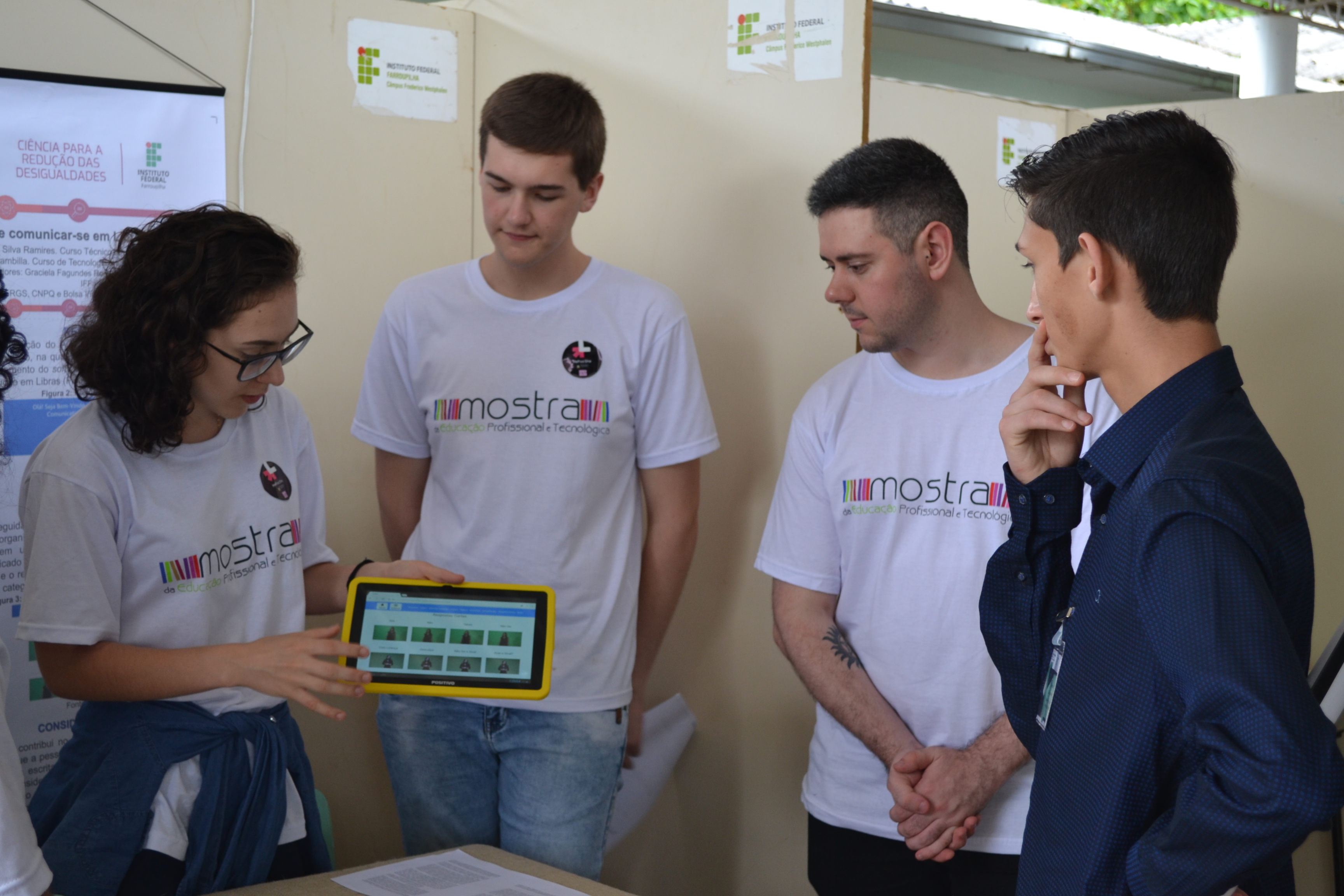 Foto: alunos do campus Santo Ângelo apresentam o trabalho vencedor da Mostra de Inovação Tecnológica
