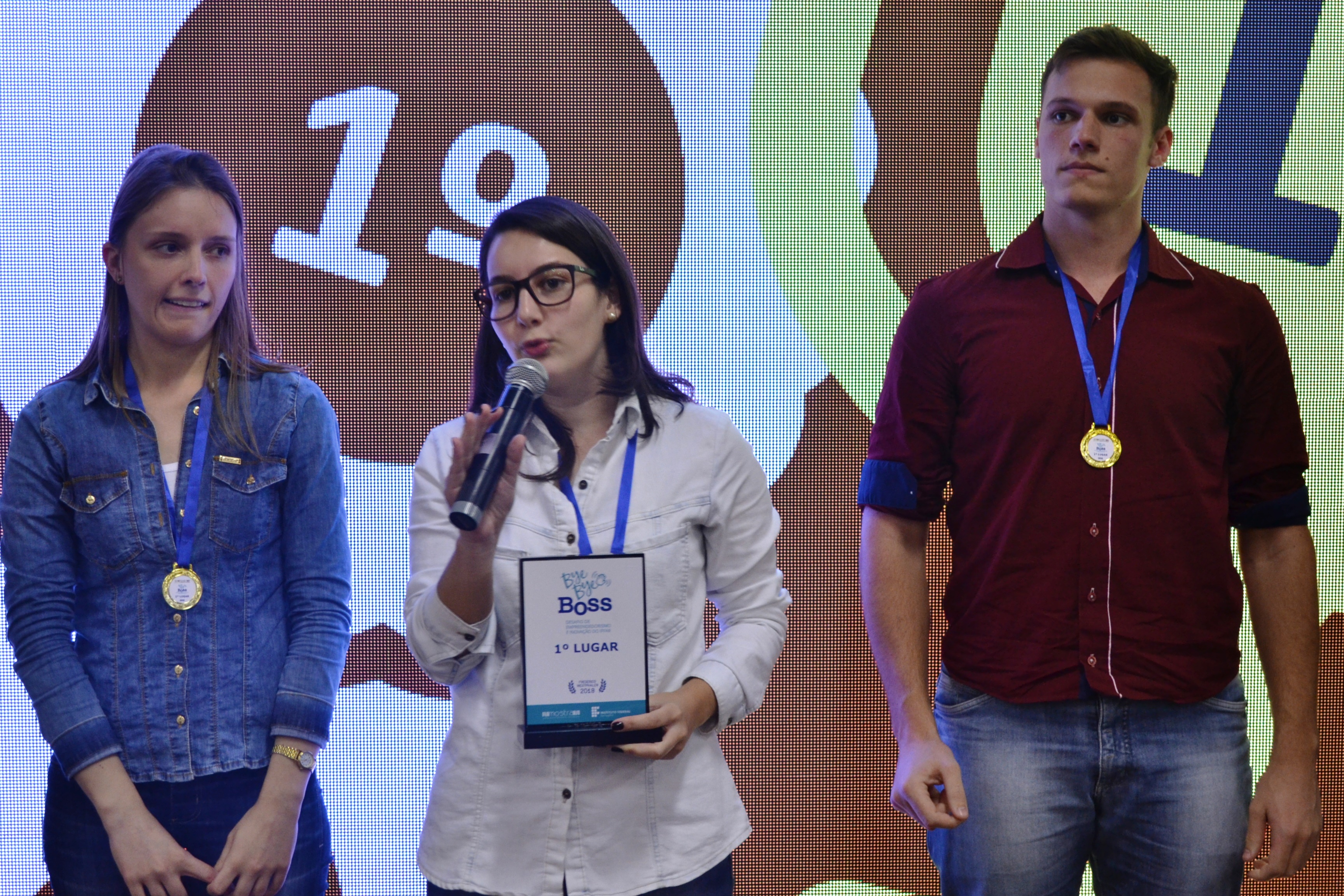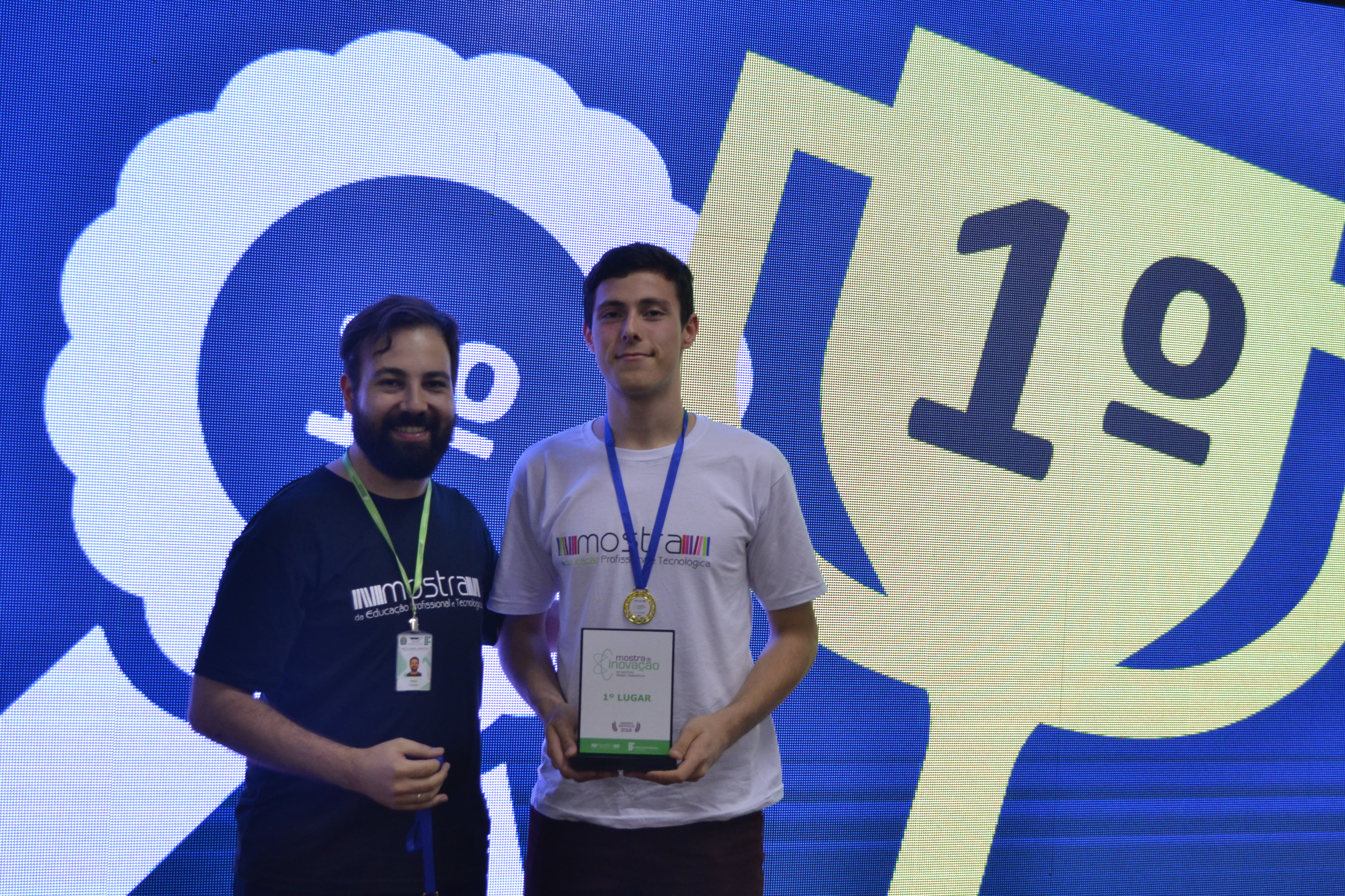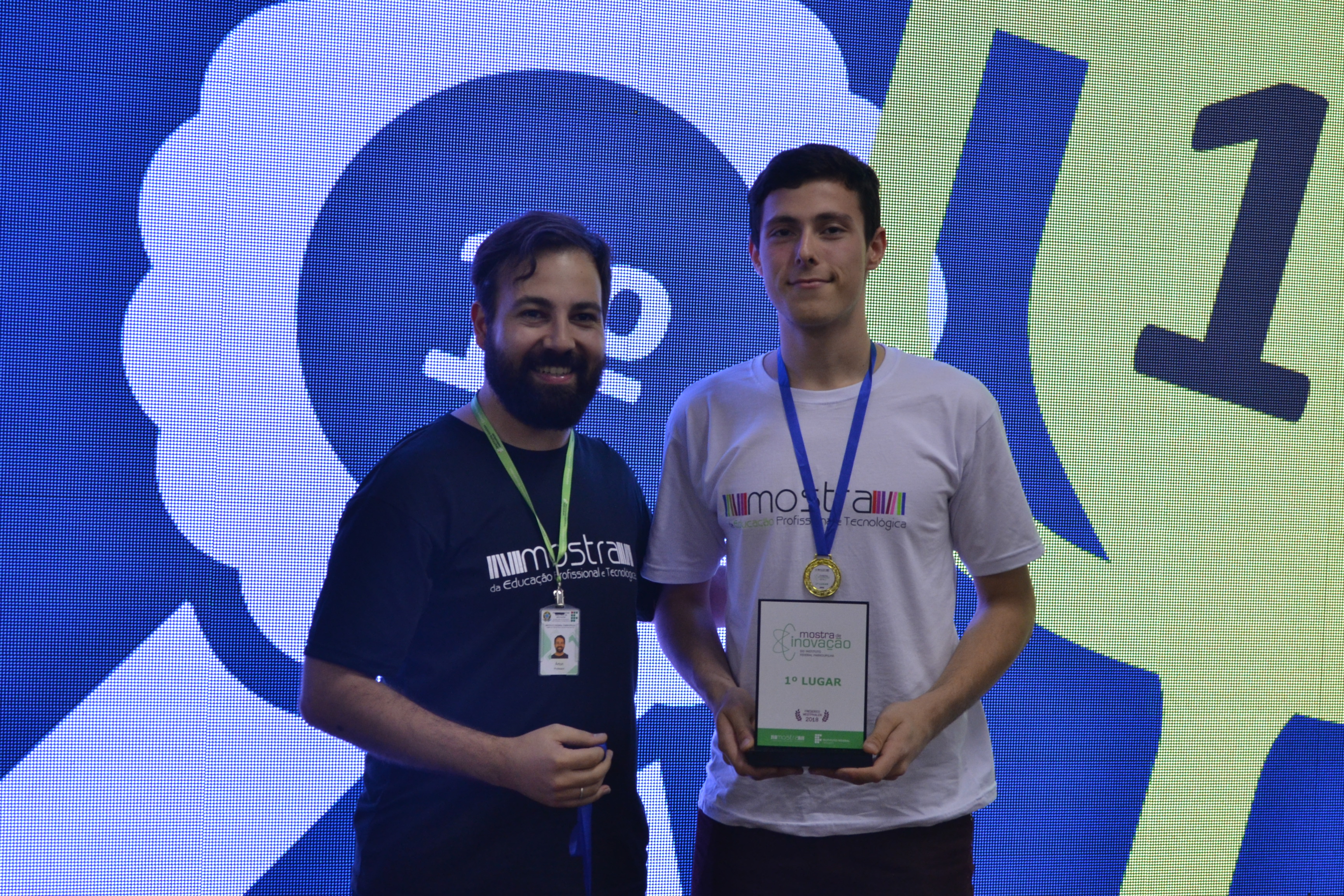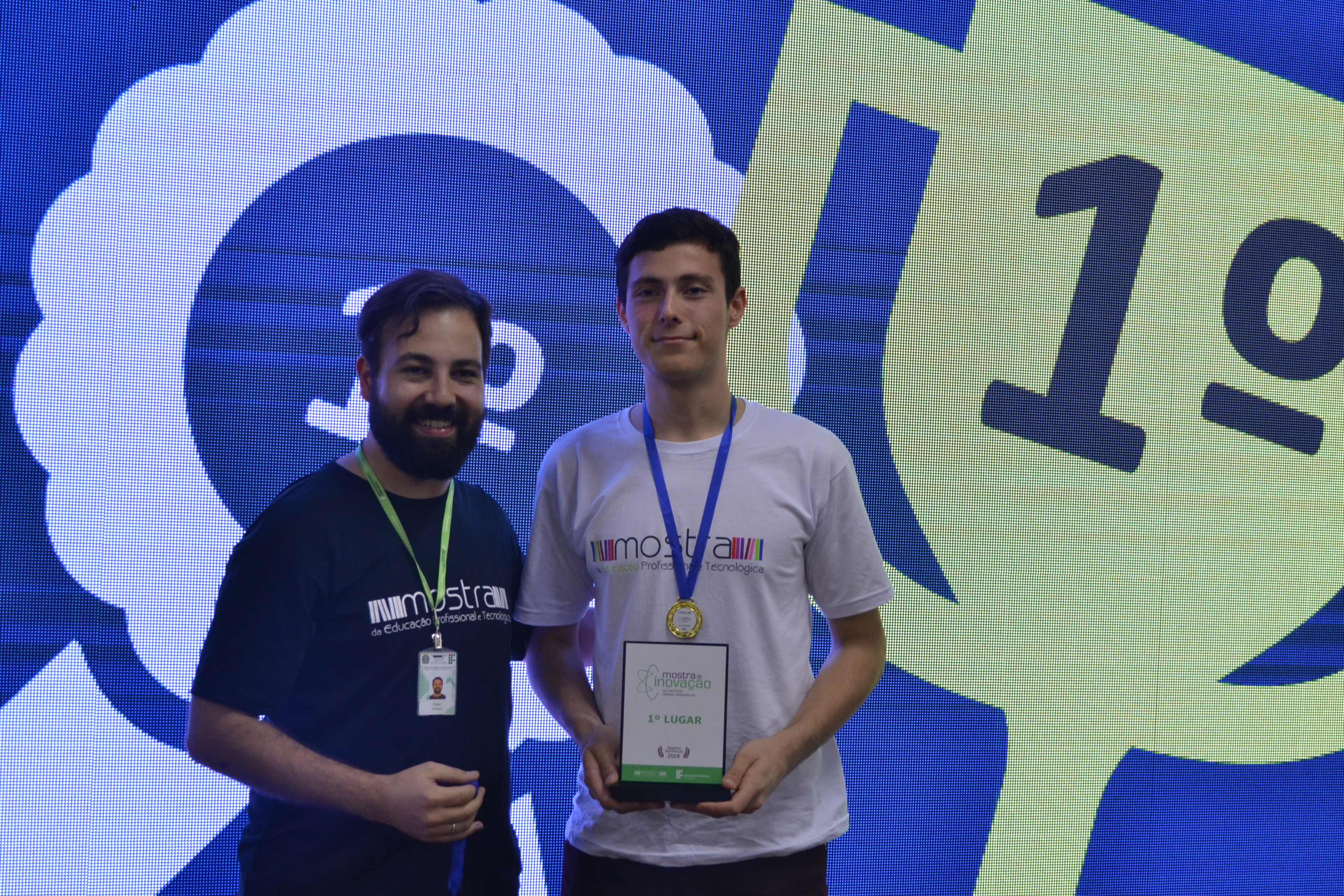Foto: alunos do campus Santo Ângelo apresentam o trabalho vencedor da Mostra de Inovação Tecnológica