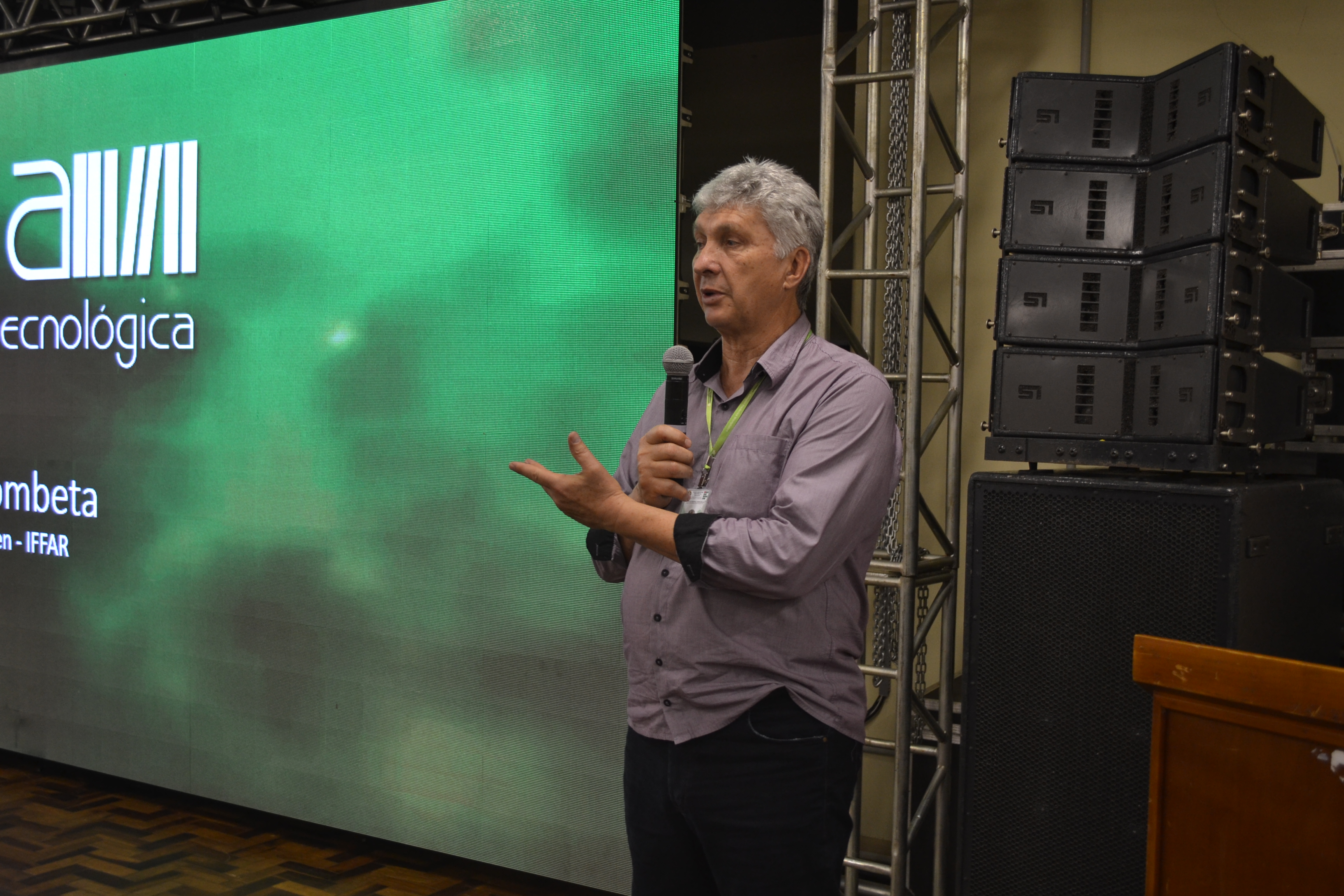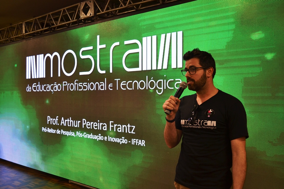 Foto: o pró-reitor de Pesquisa, Pós-Graduação e Inovação do IFFar, professor Arthur Frantz, fala durante abertura do evento