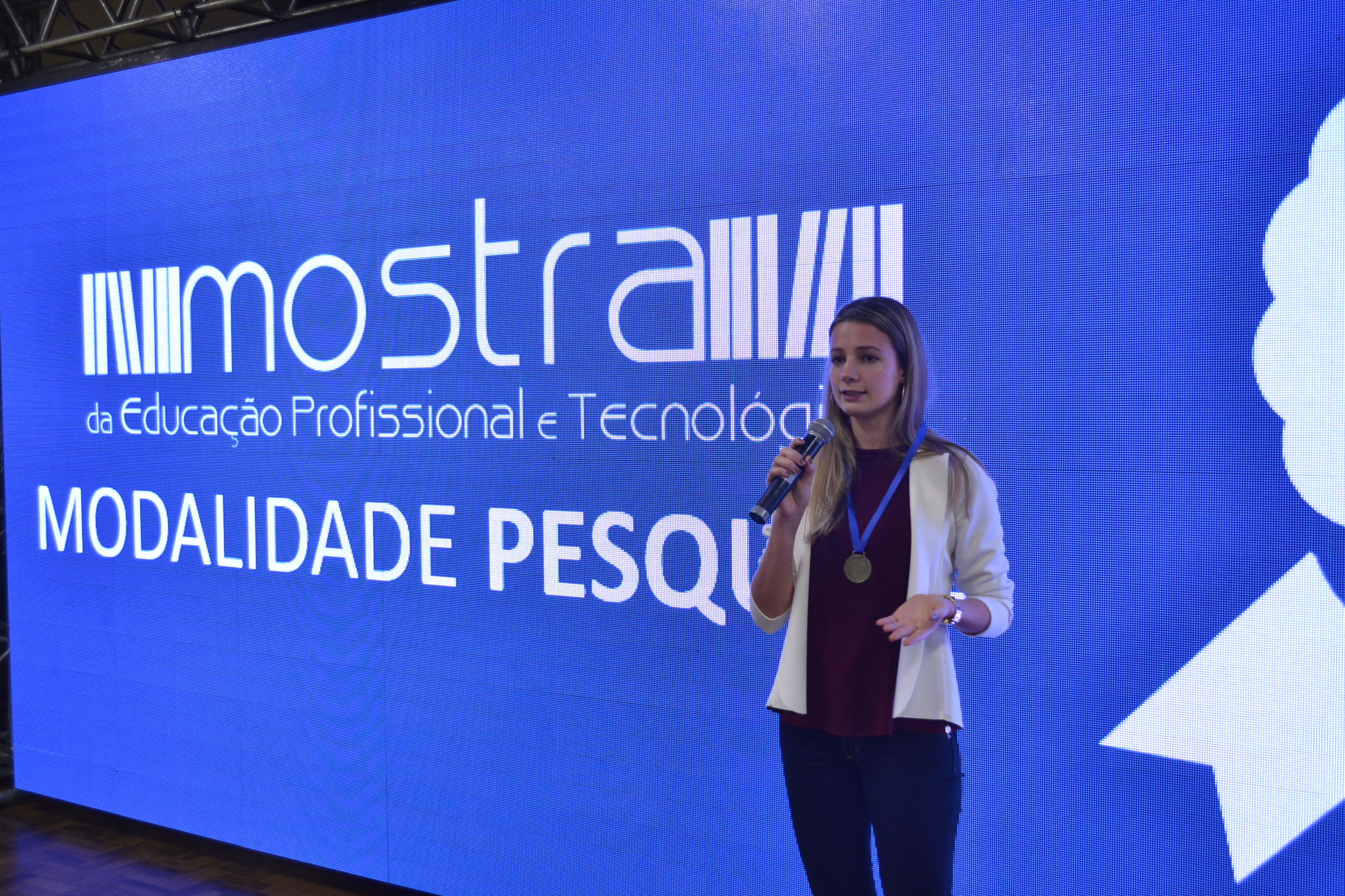 Foto: estudante apresenta trabalho na Mostra de Trabalhos da Mept
