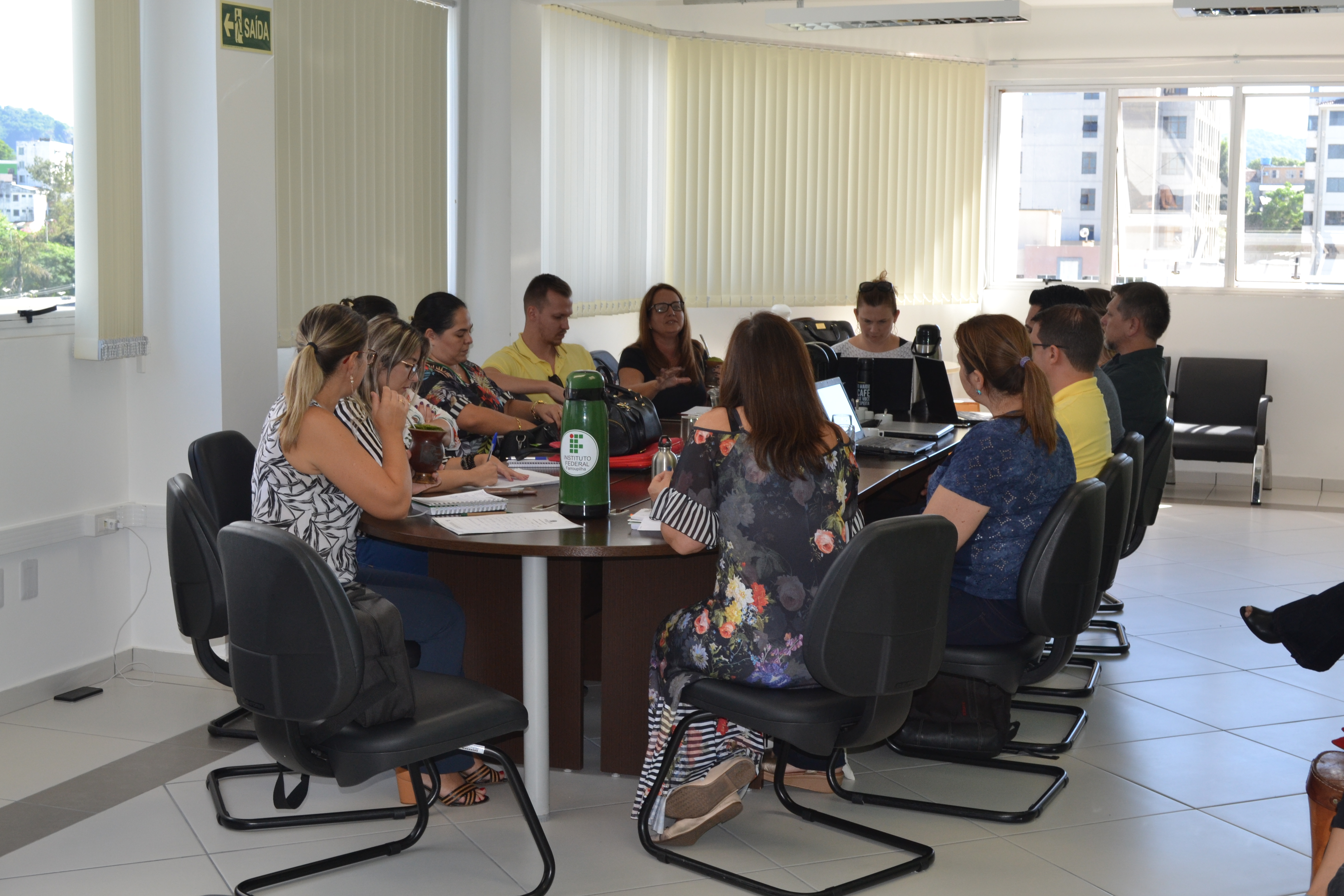 Na última quinta-feira (14), na Reitoria, membros de todas as unidades do IFFar participaram de reunião sobre a curricularização da extensão e da pesquisa na instituição.