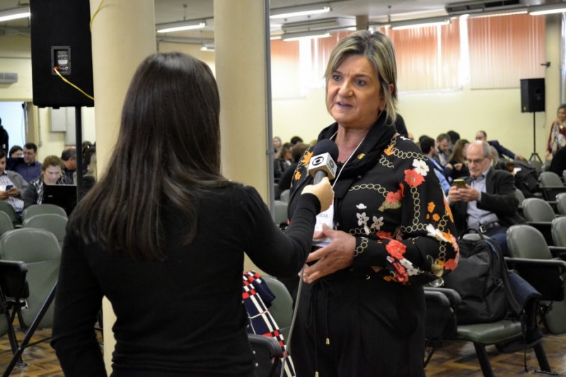 Foto: reitora do IFFar concede entrevista à TV local; ato contou com a presença dos principais veículos de comunicação regionais
