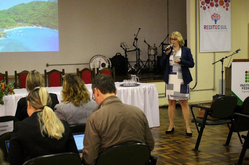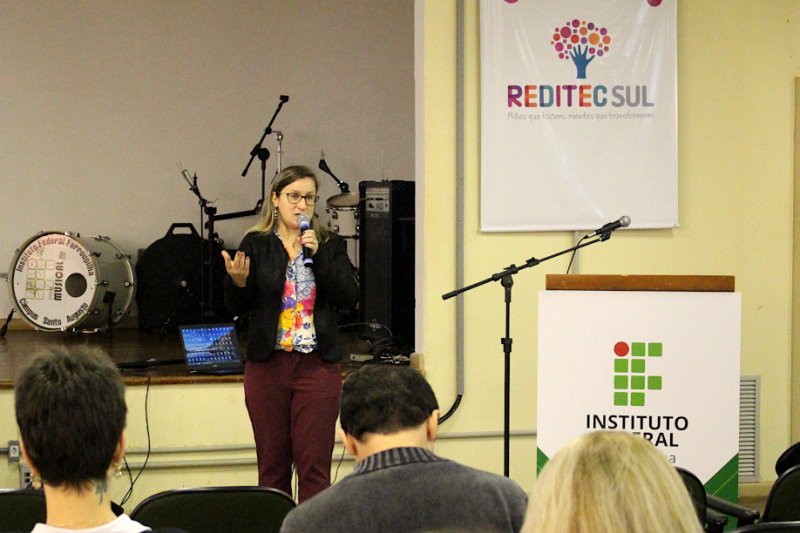 Foto: pró-reitora de Extensão do IFFar apresenta experiências exitosas durante a Reditec Sul 2019