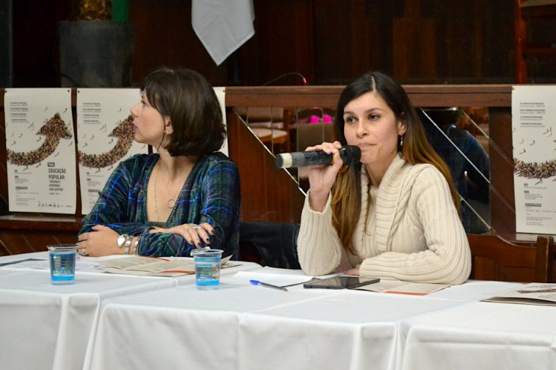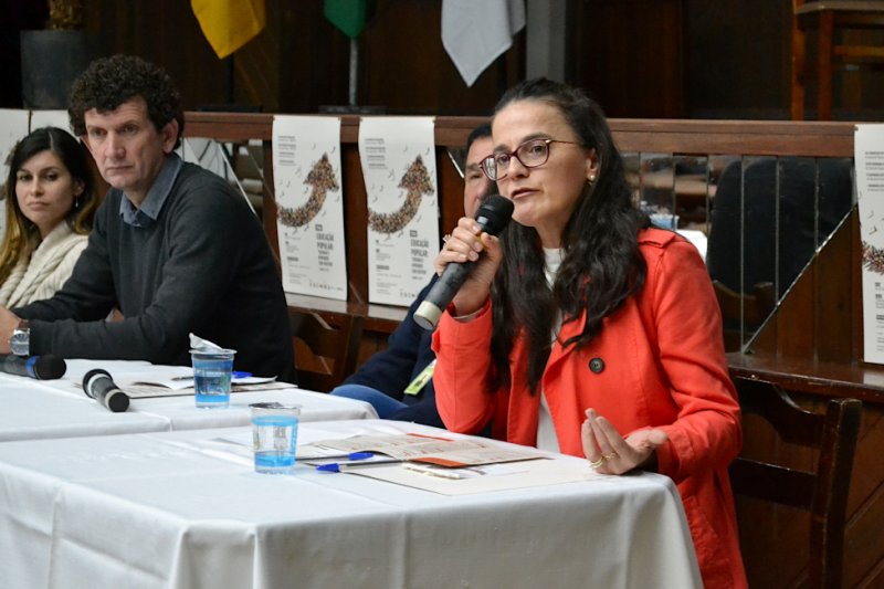 Professora de agroecologia, Tatiana Balém também falou sobre a abordagem de temas progressistas em sala de aula. Sobre o Movimento Sem Terra, ela denunciou a representação midiática sobre a violência e a origem dos grupos. Ela disse que o movimento tem estratégias de luta e de serem visíveis e que os assentamentos são na maioria produtivos. Segundo Tatiana, a Agricultura Familiar produz 70% dos alimentos consumidos no Brasil.