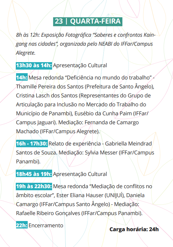 As inscrições para o Seminário Educação, Diversidade e Inclusão (SEDI), realizado no Campus Panambi nos dias 22 e 23 de outubro, podem ser realizadas até esta sexta-feira (18).