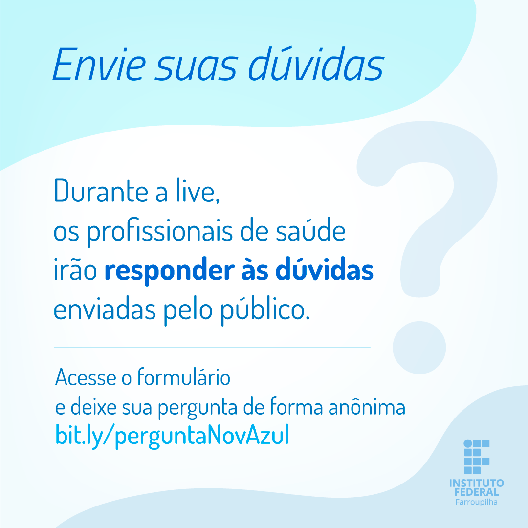 Durante a live, profissionais de saúde irão responder às dúvidas enviadas pelo público, que podem ser enviadas anonimamente por meio deste formulário - bit.ly/perguntaNovAzul, até o meio-dia de hoje.