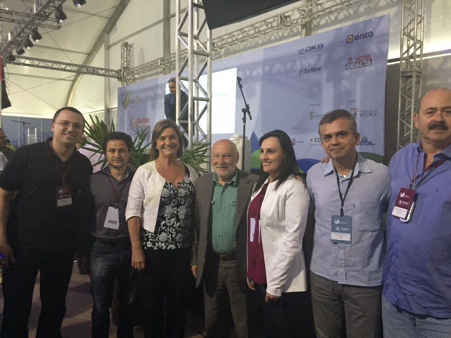 *Na foto: parte da delegação do IF Farroupilha com o ministrante da palestra de abertura. Da esquerda para a direita: Rodrigo Carlotto, diretor geral do campus Júlio de Castilhos, Vanderlei Pettenon, pró-reitor de Administração, Carla Comerlato Jardim, reitora do IF Farroupilha, Domenico de Masi, sociólogo italiano palestrante da abertura dos eventos, Nídia Heringer, pró-reitora de Desenvolvimento Institucional, Eliseo Gimenez, assessor de relações internacionais, e João Carlos Ribeiro, diretor geral do campus avançado Uruguaiana.
