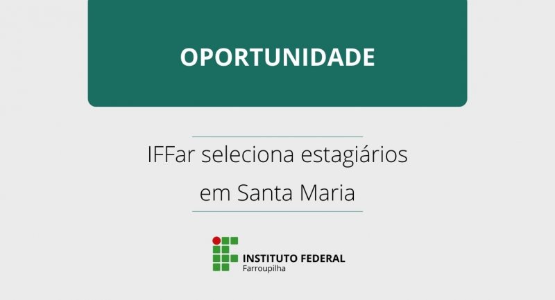 O Instituto Federal Farroupilha abriu seleção para 11 vagas de estágio para atuação na Reitoria, em Santa Maria. As bolsas vão até R$1125,69, mais auxílio transporte. As inscrições vão até 21 de fevereiro.