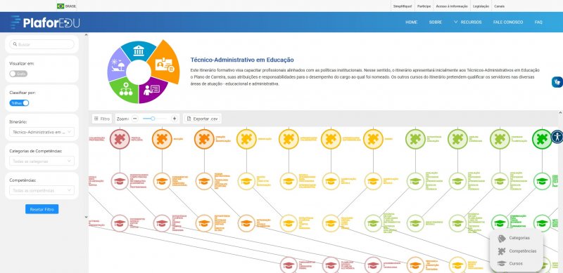 A PlaforEDU apresenta os perfis de servidores em cinco Itinerários Formativos, sendo eles: Iniciação ao serviço público; Técnico-administrativos em Educação; Docentes; Gerencial; e Aposentadoria. De acordo com o secretário da Secretaria de Educação Profissional e Tecnológica (Setec), Tomás Dias Sant’Ana, esse será um espaço com cursos e treinamentos que visam potencializar a atuação profissional dos servidores.