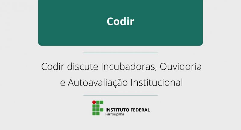 O Colégio de Dirigentes do IFFar (Codir) realiza sua 6ª Reunião Ordinária nesta quarta-feira (17). Na primeira parte do encontro, foram discutidos temas relativos às Incubadoras de Base Tecnológica do IFFar, à Ouvidoria e ao Processo de Autoavaliação Institucional em 2022. A reunião continua durante o período da tarde.