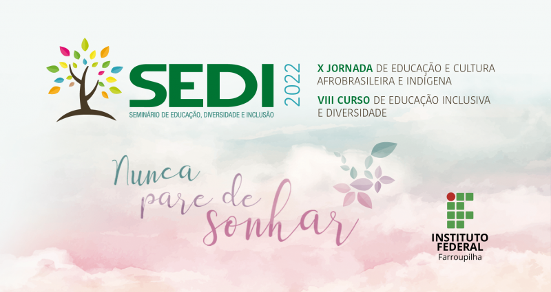 De 30 de agosto a 1º de setembro, o IFFar promove o VI Seminário de Educação, Diversidade e Inclusão (SEDI), a X Jornada de Educação e Cultura Afrobrasileira e Indígena e o VIII Curso de educação inclusiva e diversidade. Os eventos integrados serão realizados no Campus Júlio de Castilhos, sob o tema “Nunca pare de sonhar”. A programação conta com conferências, mesas-redondas, palestras e atividades inclusivas.
