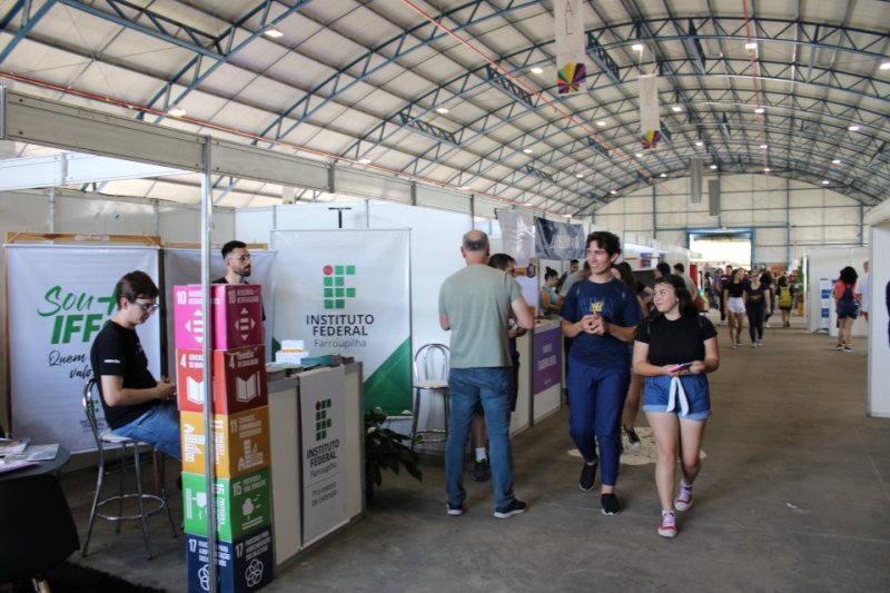 Foto: o estande do IFFar está localizado nos fundos do pavilhão do Centro de Eventos da UFSM