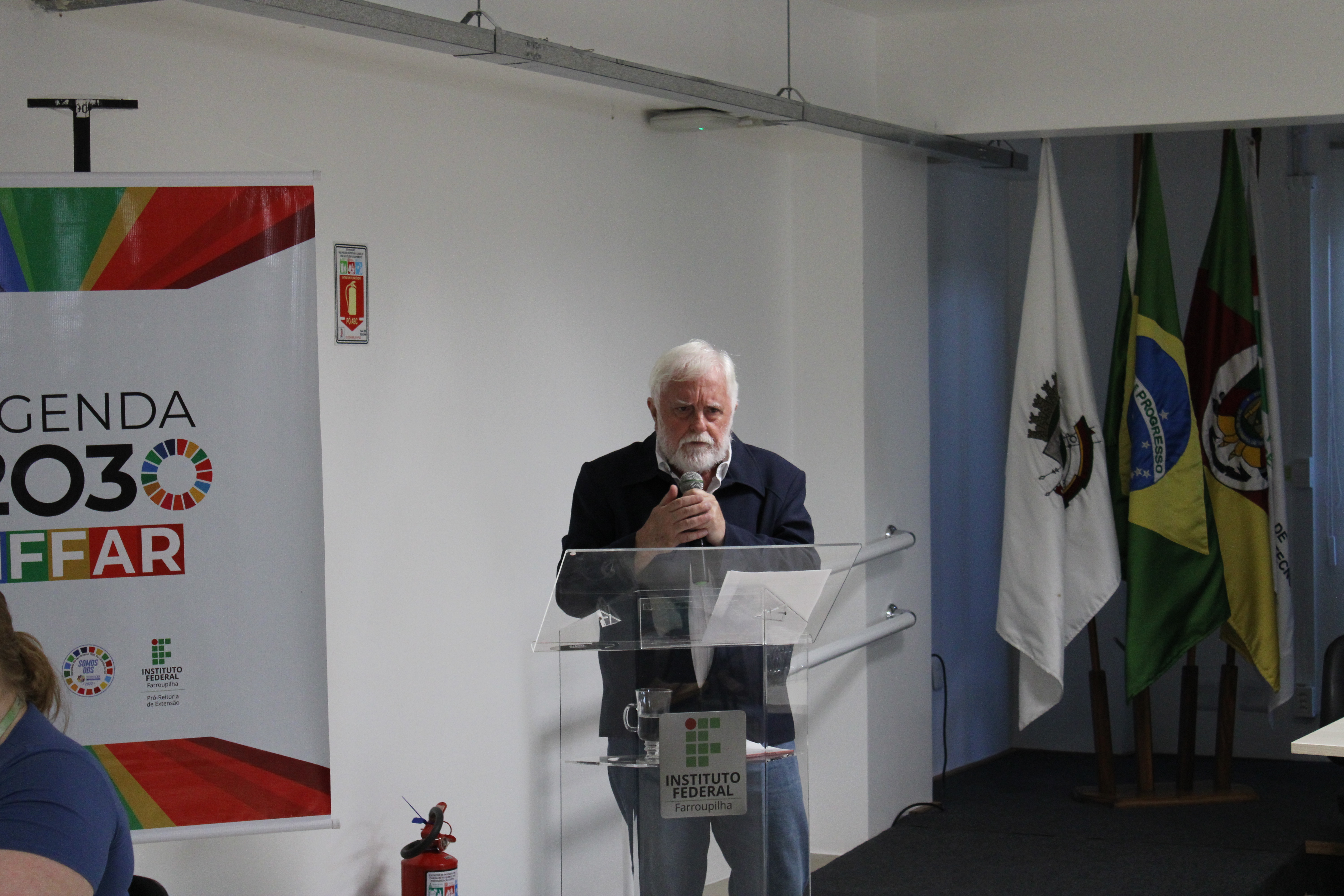 Após as falas de abertura, foi realizada uma conferência com o tema Educação em Direitos Humanos no IFFar: contextos emergentes e possibilidades de intervenção. A fala foi realizada pelo professor Sólon Viola, da Universidade do Rio dos Sinos (Unisinos). A conversa foi mediada ela professora Marileia de Moraes, do IFFar – Campus Santo Augusto.