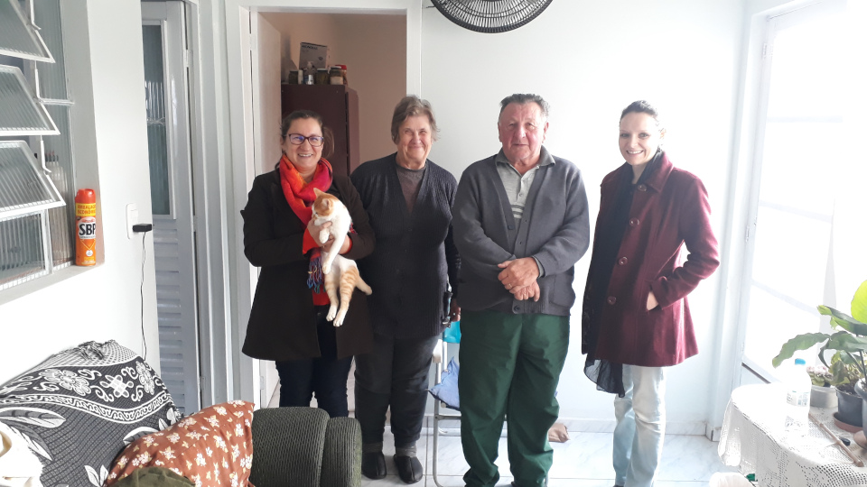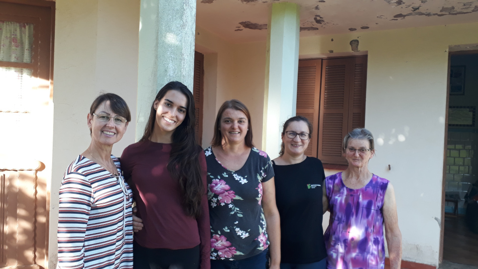 Raquel Lunardi e Rafaela Vendruscolo junto a Dona Alzira e o Marido Lino durante entrevista relizada pelo projeto Saberes e Sabores